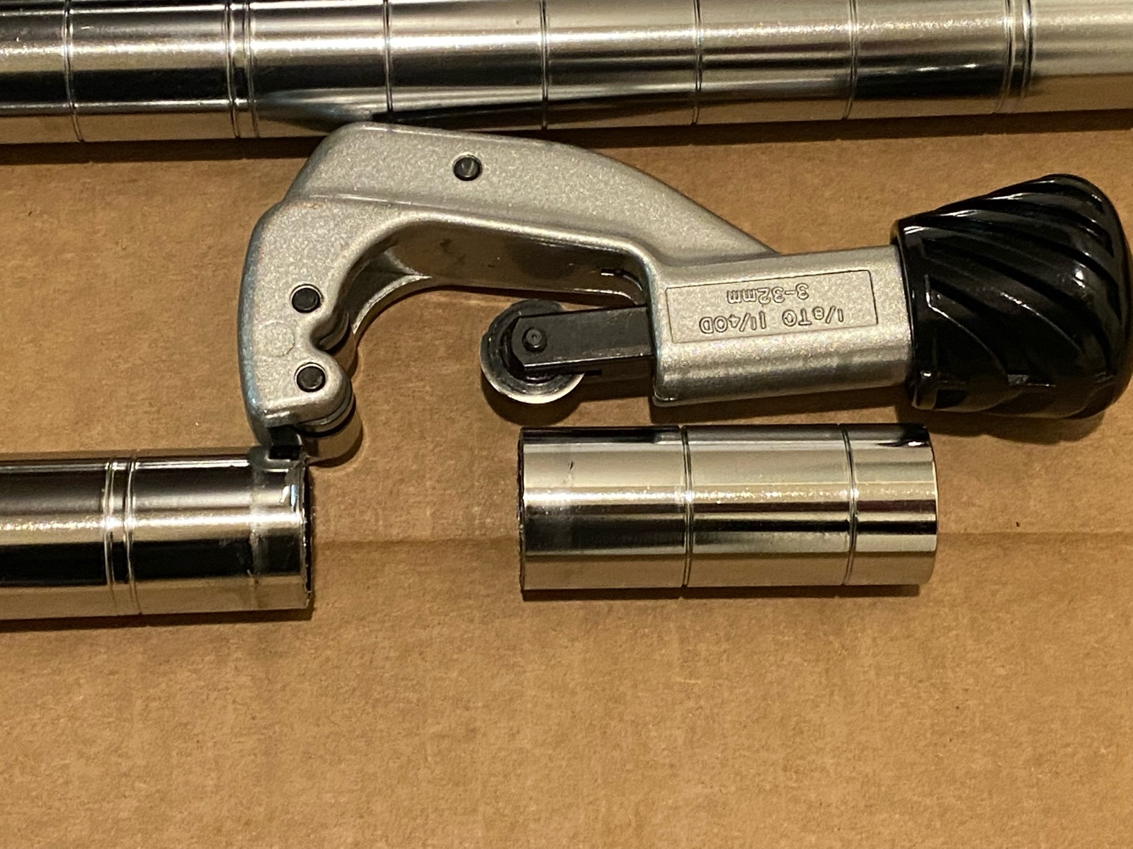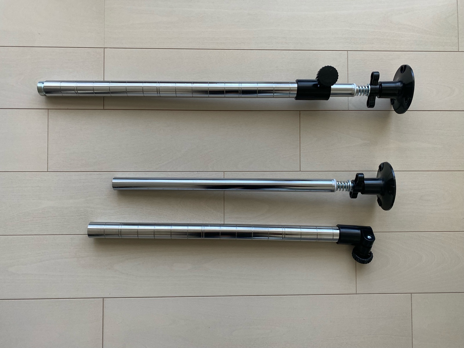 外側のポールは下部分は延長のネジの溝が必要なのでカットできない。