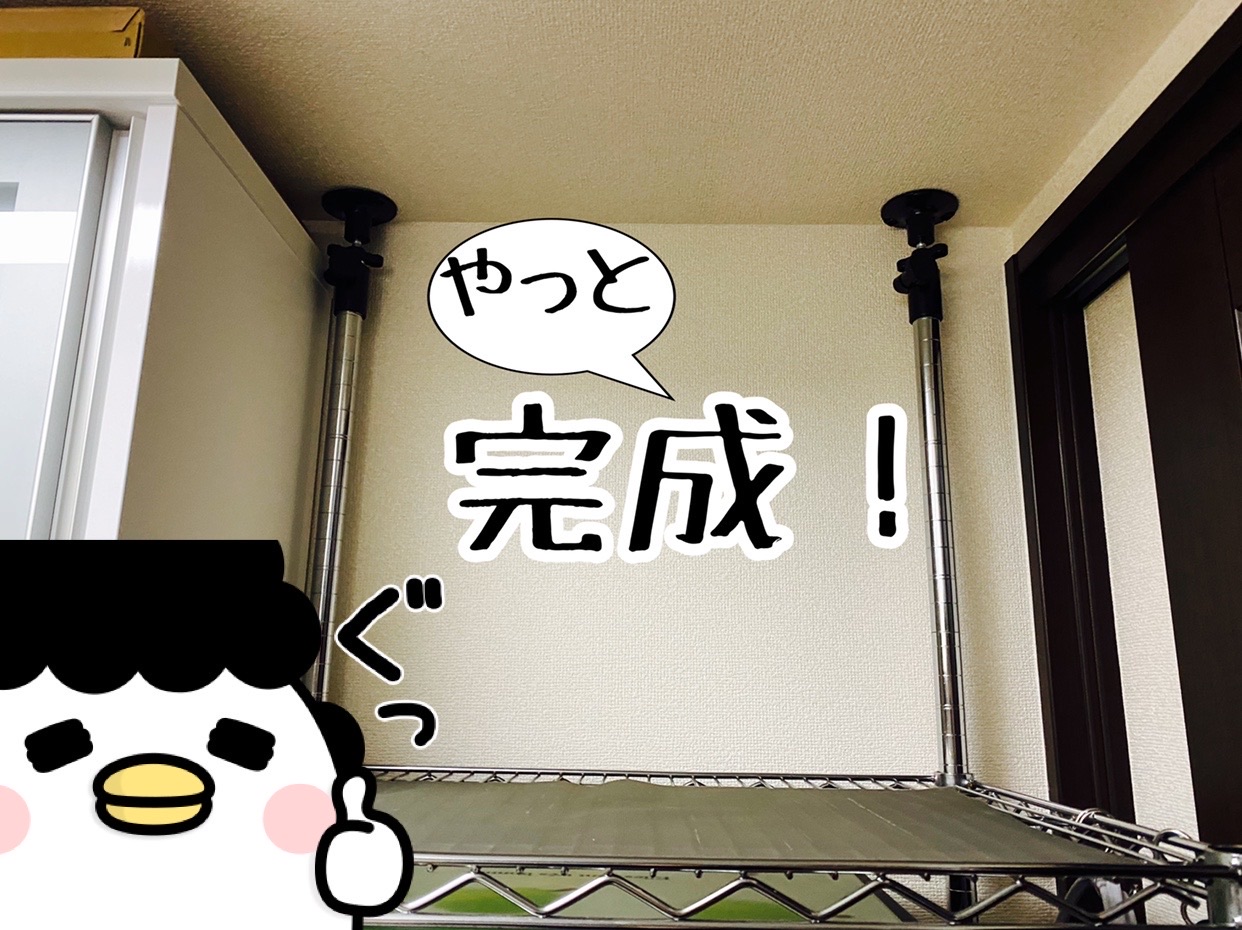 置く場所の高さに合わせてスチールラックの先端をカットしていたので取付できず1日目が終了。
