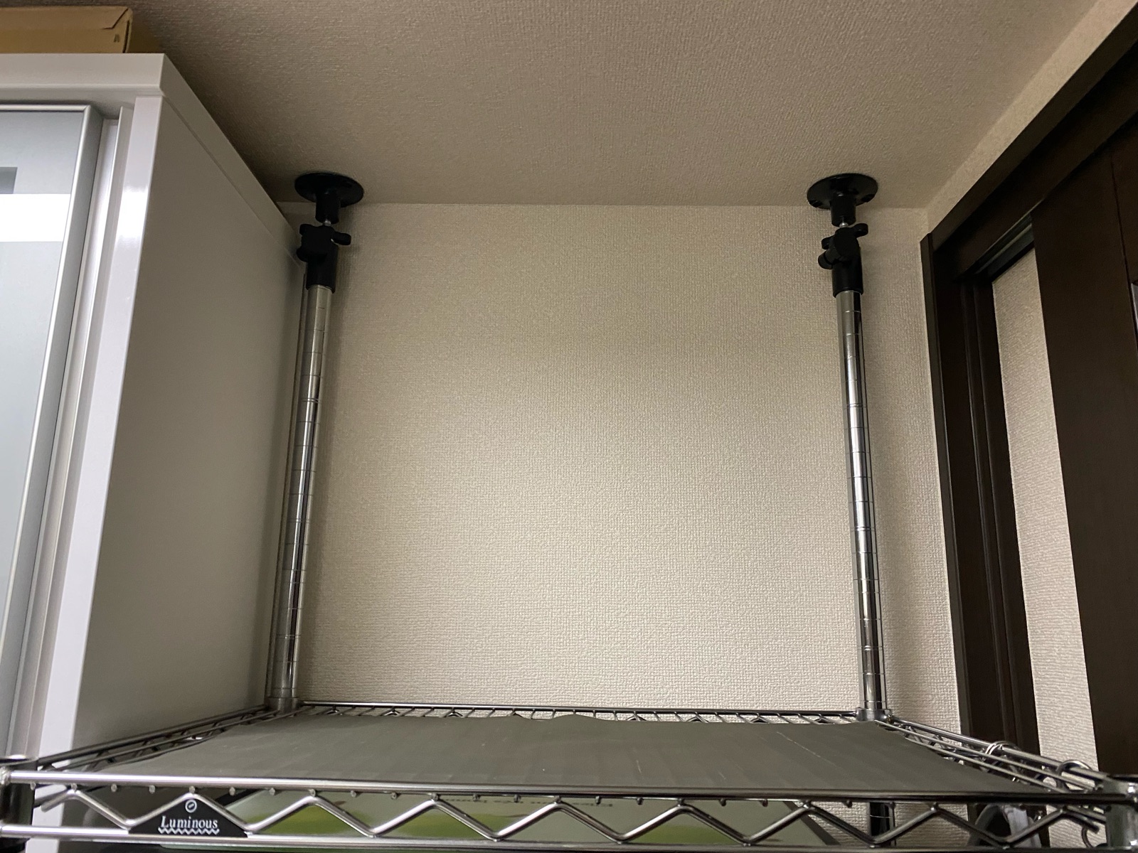 キッチン背面で利用しているスチールラックに転倒防止対策セットがある事を知り
