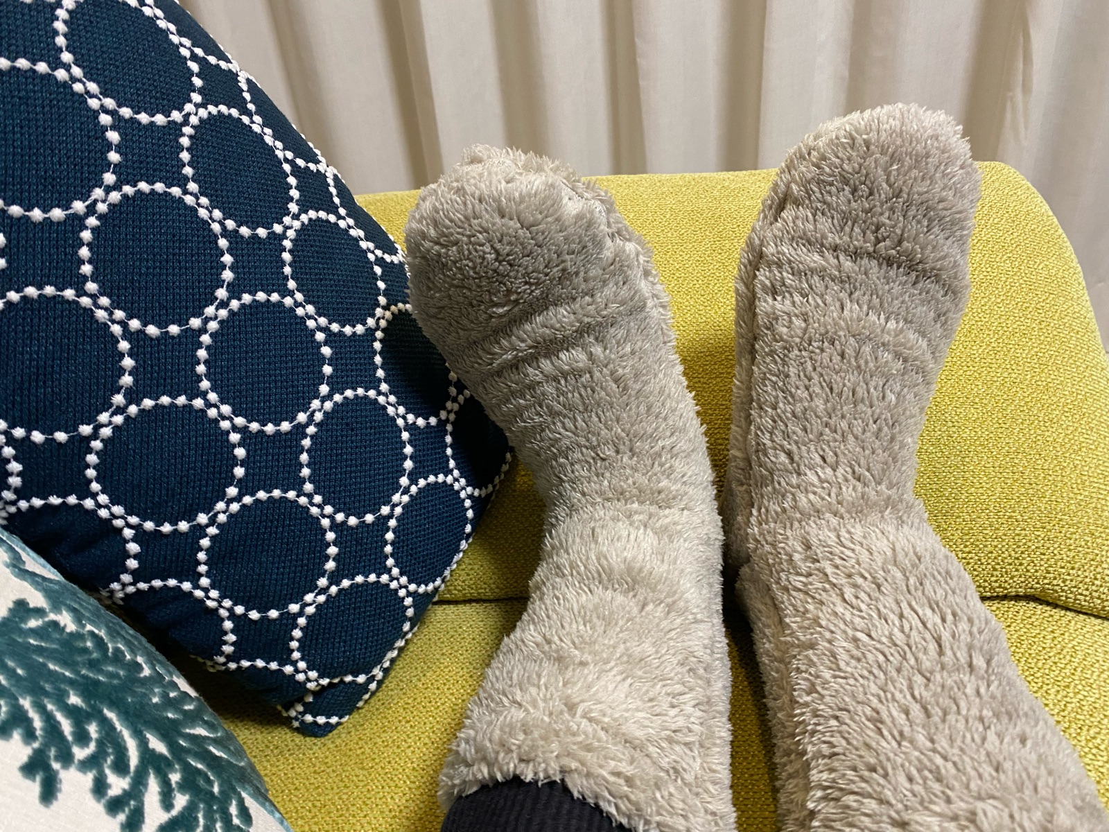 ソファーやイスに座っている時はこのルームソックスだけでポカポカと暖かいです。