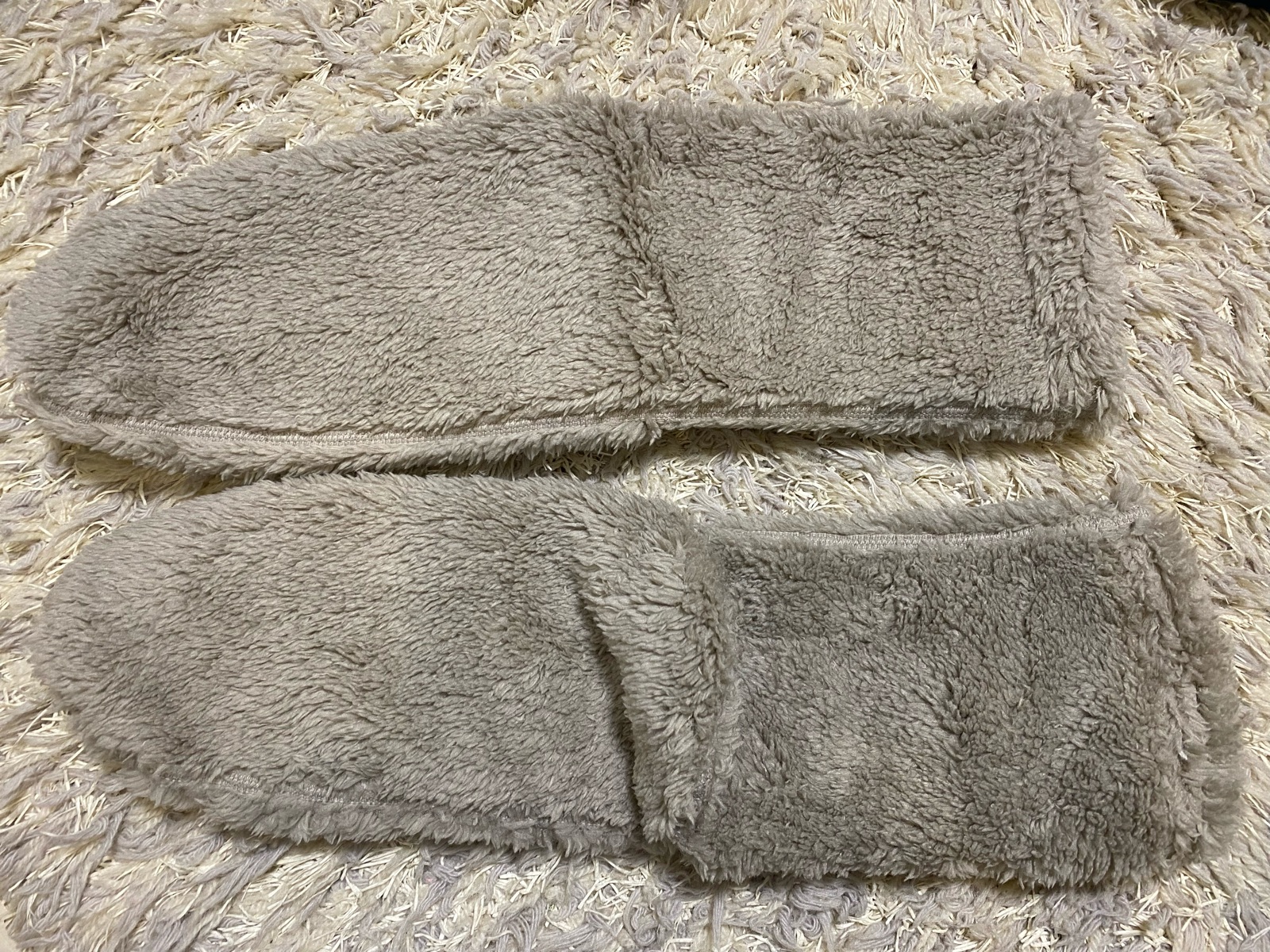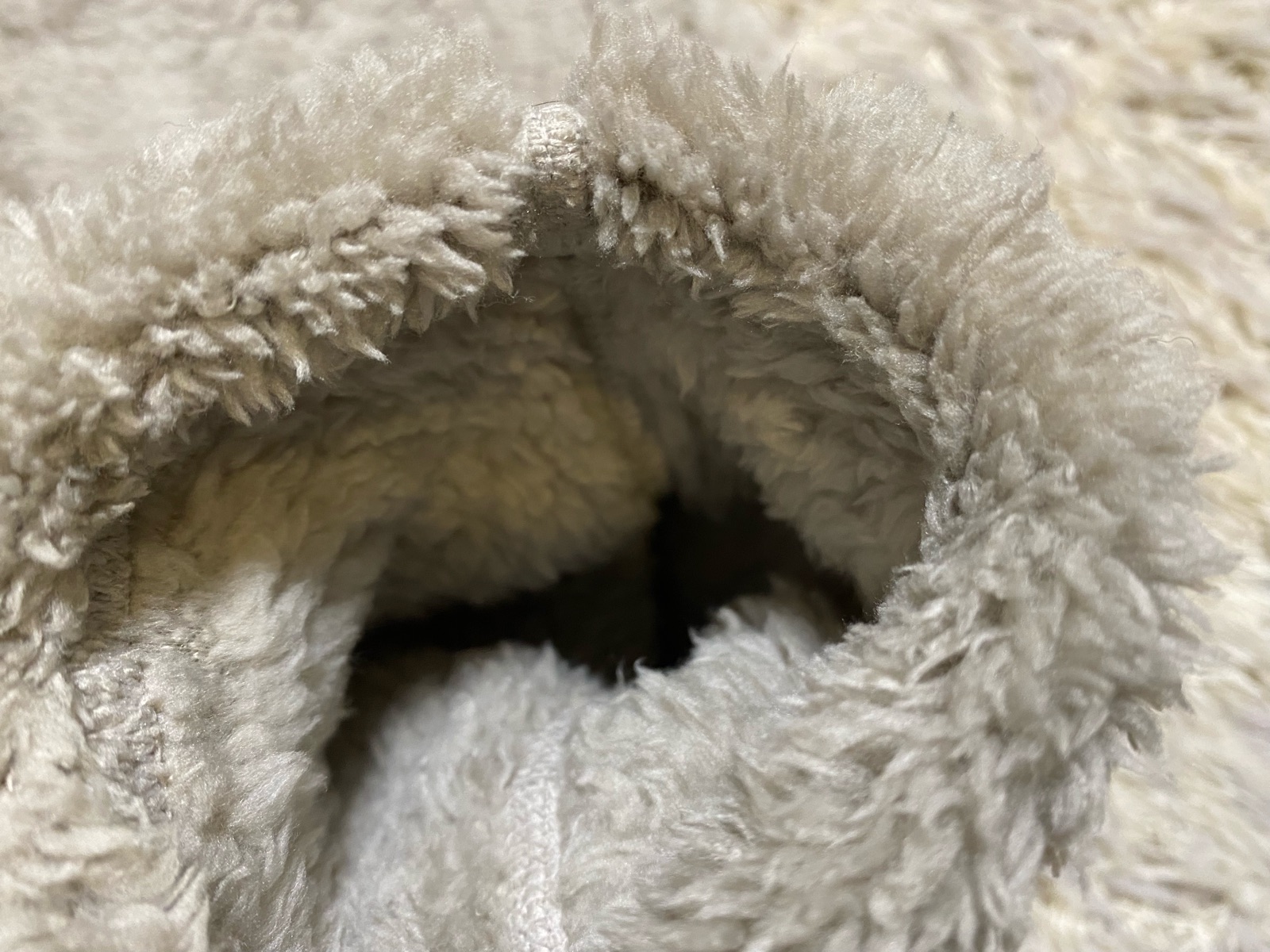 無印の靴下と同じ足なり直角で、両面ボアの生地ですが軽くて柔らかい肌触りです。