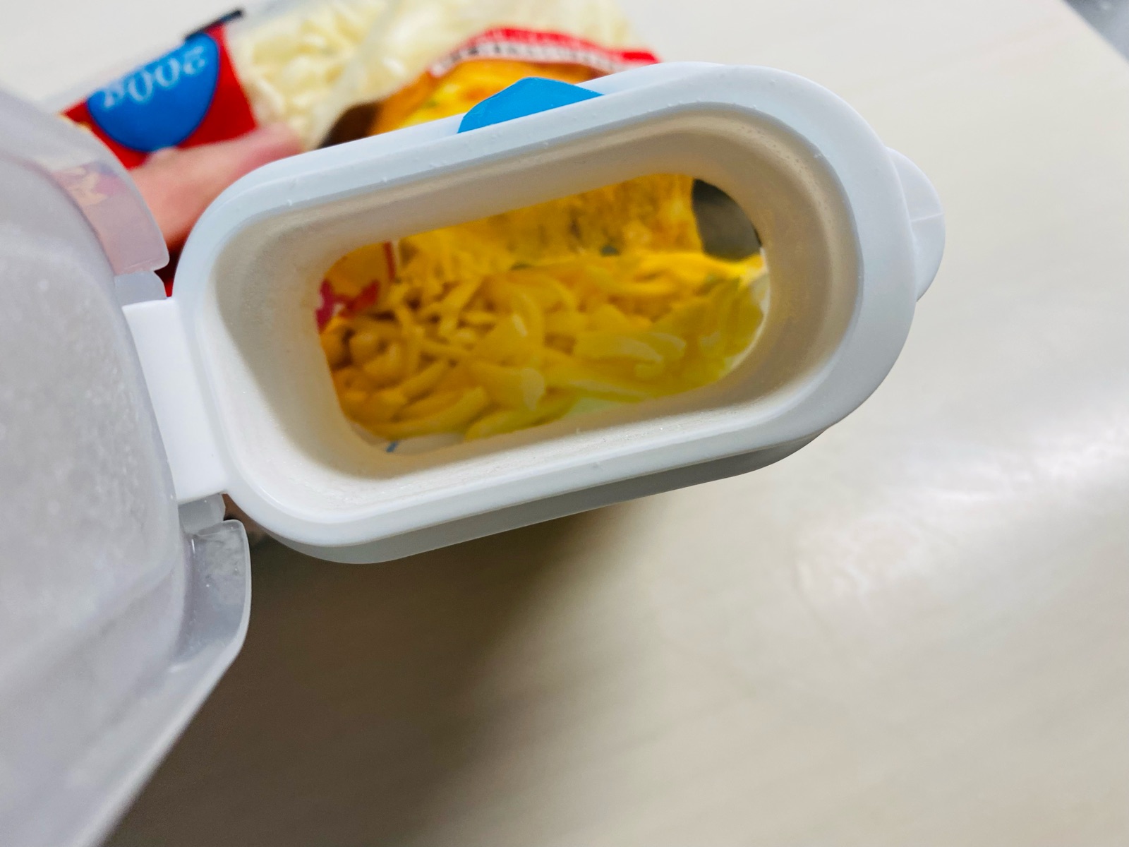 袋でも【チーズをパラパラの状態で冷凍する方法】は使えるので、中はパラパラチーズです。