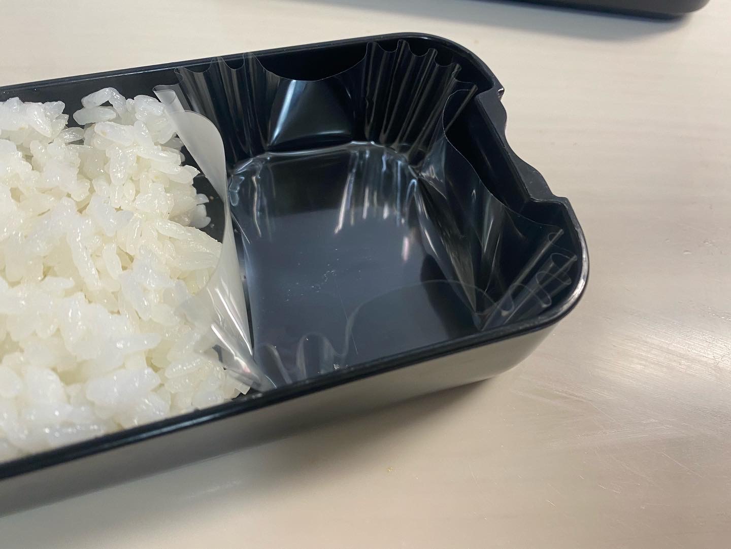左手前のエビカツはカップに納まらなかったので紙のカップです。(;^_^A