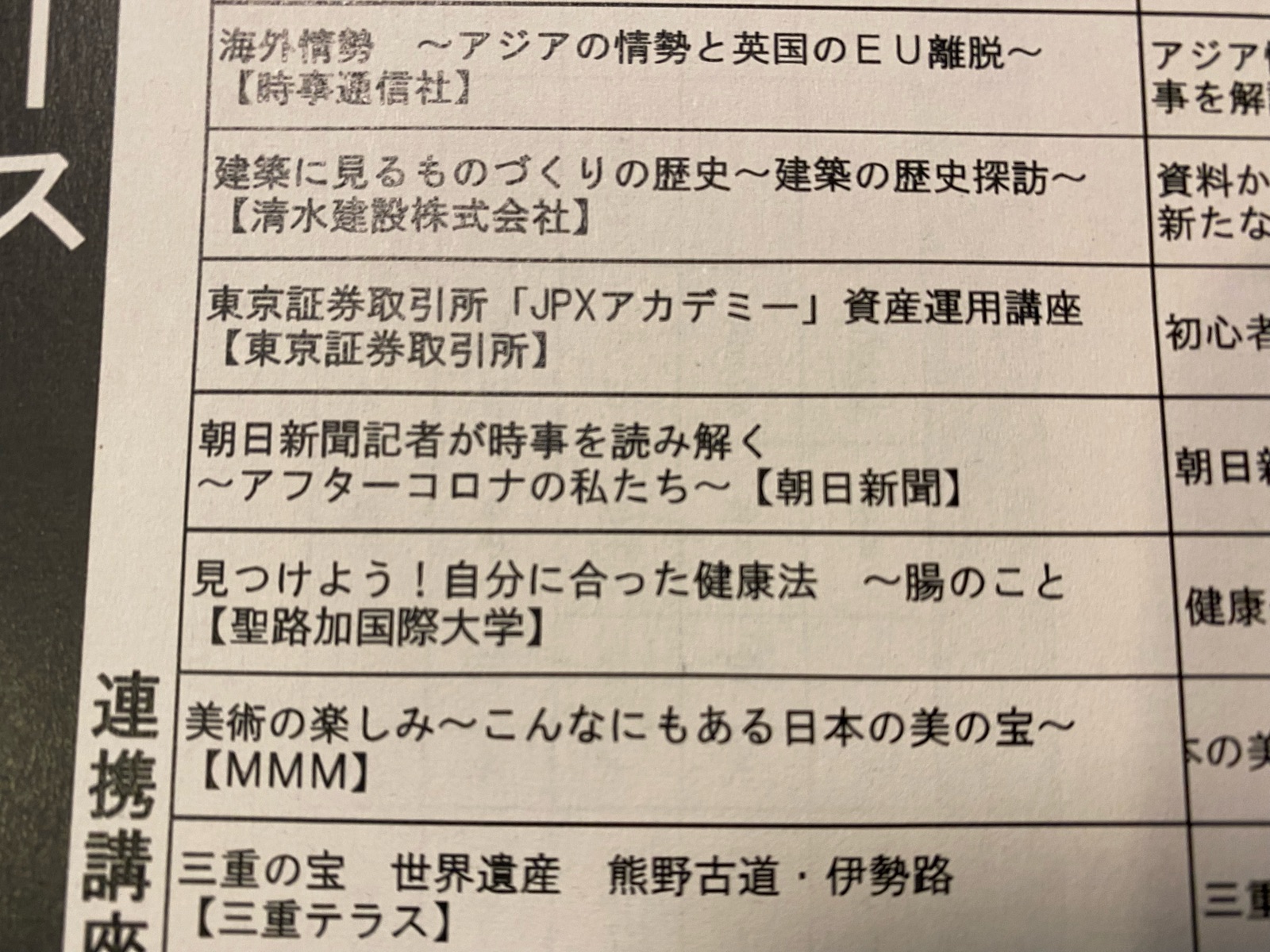 区でやっている「区民カレッジ」なるモノがあると区の広報で知り