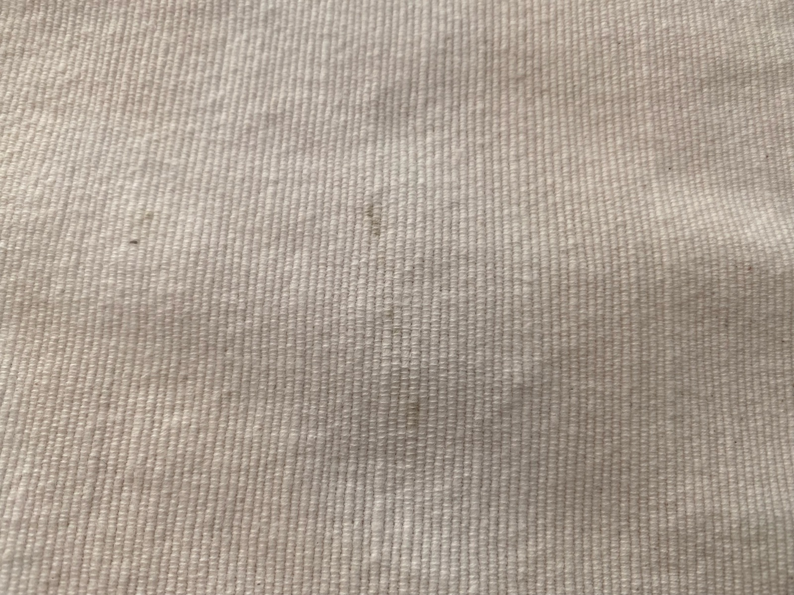 白くまだらになったのは、ウタマロ石鹸など蛍光漂白剤の洗剤も使用したため、キッチンハイターが原因か不明なのですが、白い布の場合はやっぱりキッチンハイター最強!!でした。