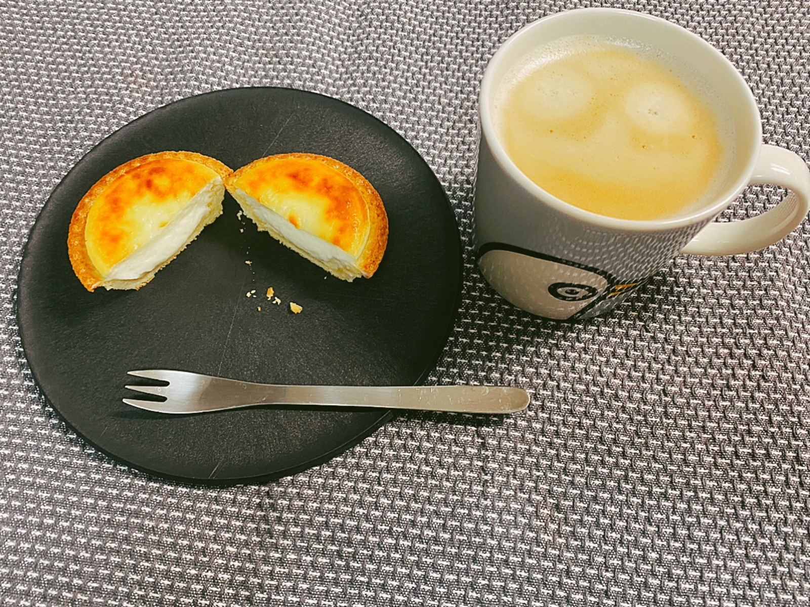 7分待っている間にコーヒーを入れて、7分経過した所で半分にカット。