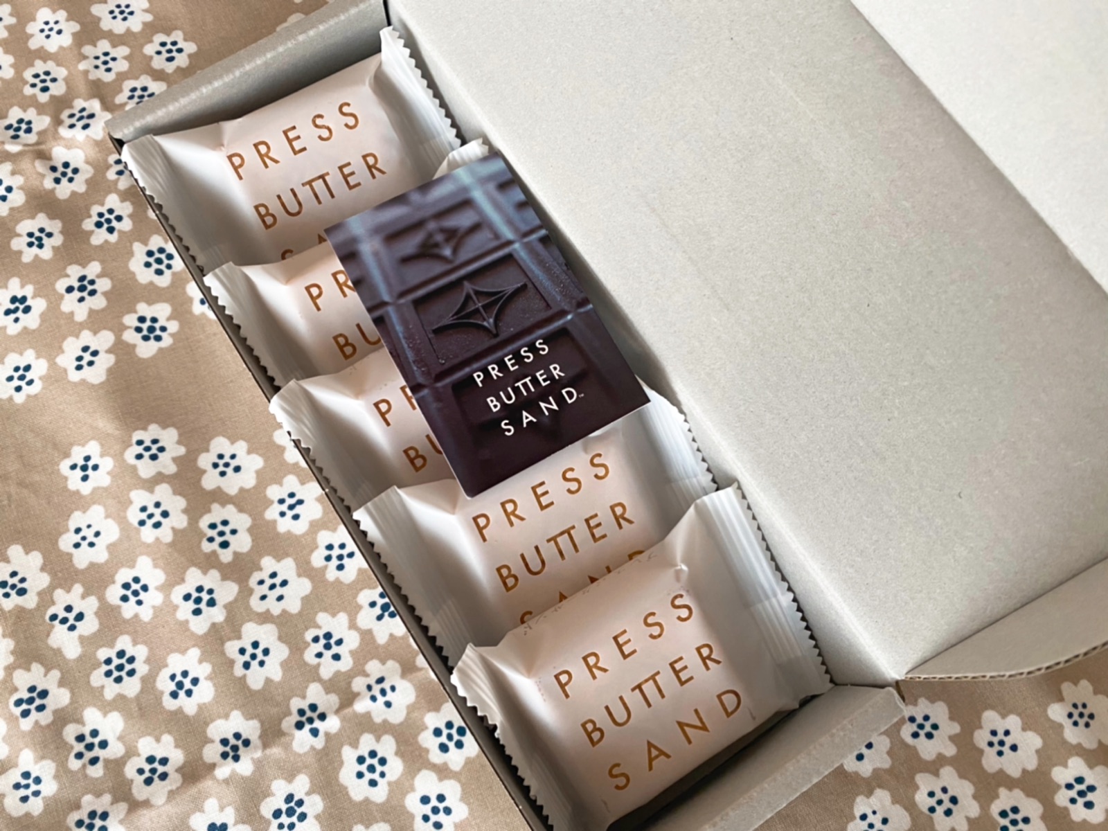 冷凍で届くので、プレスバターサンドは冷蔵庫で8時間を目安に解凍が必要です。