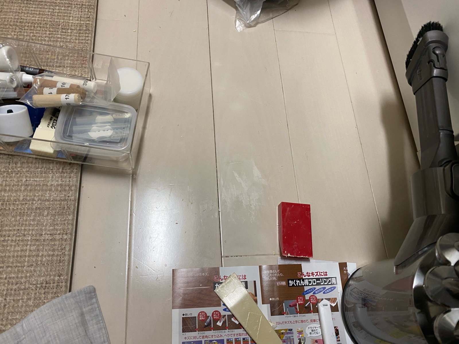 床の傷補修セットとこれまでに購入している補修材を使って