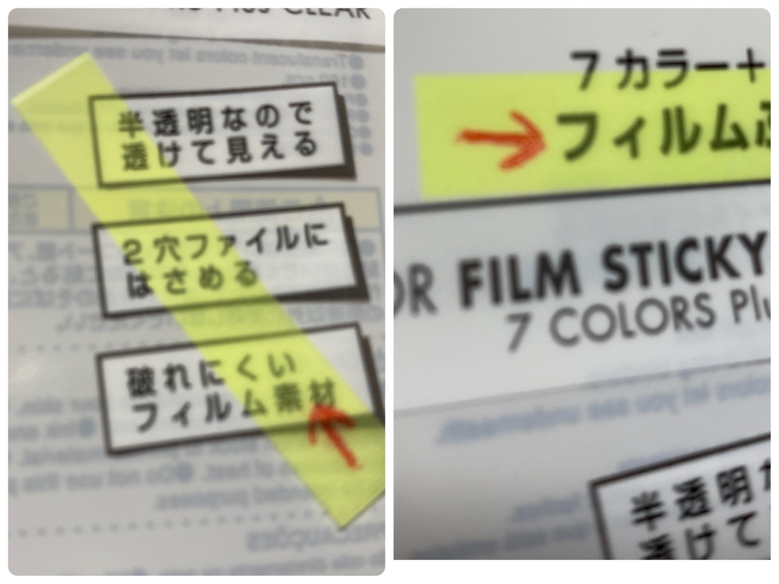 半透明のフィルムなので、下の文字が透けて見えて破れにくい←仕事の資料作りなどで便利ポイント(2)