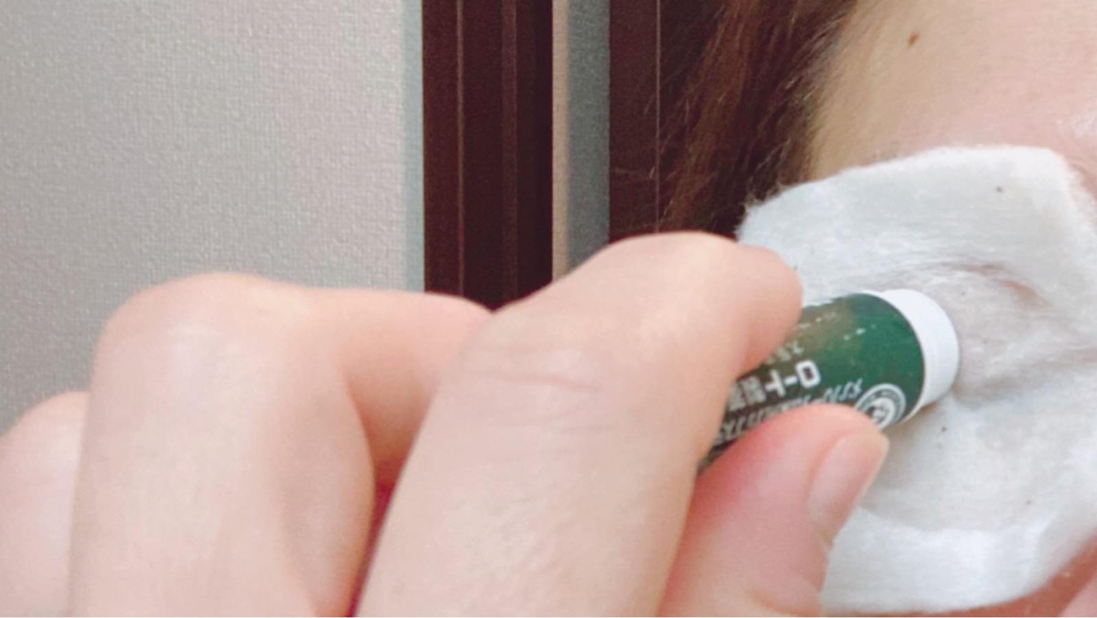 コットンで化粧水を塗った後、コットンの上から
