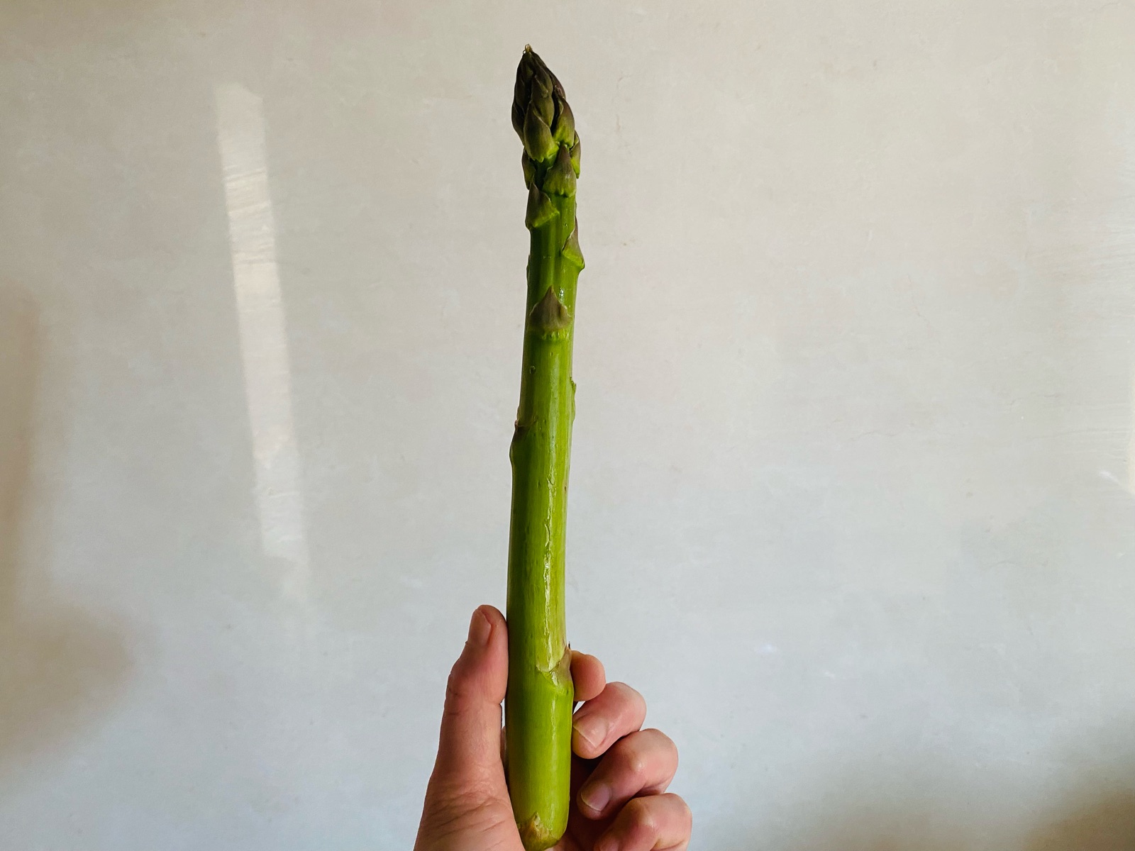 まめ嫁の親指よりもはるかに太いアスパラガス。