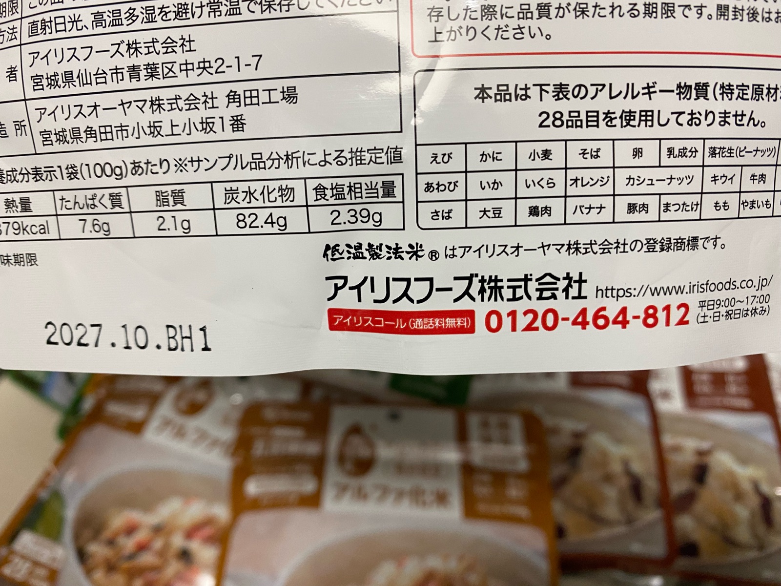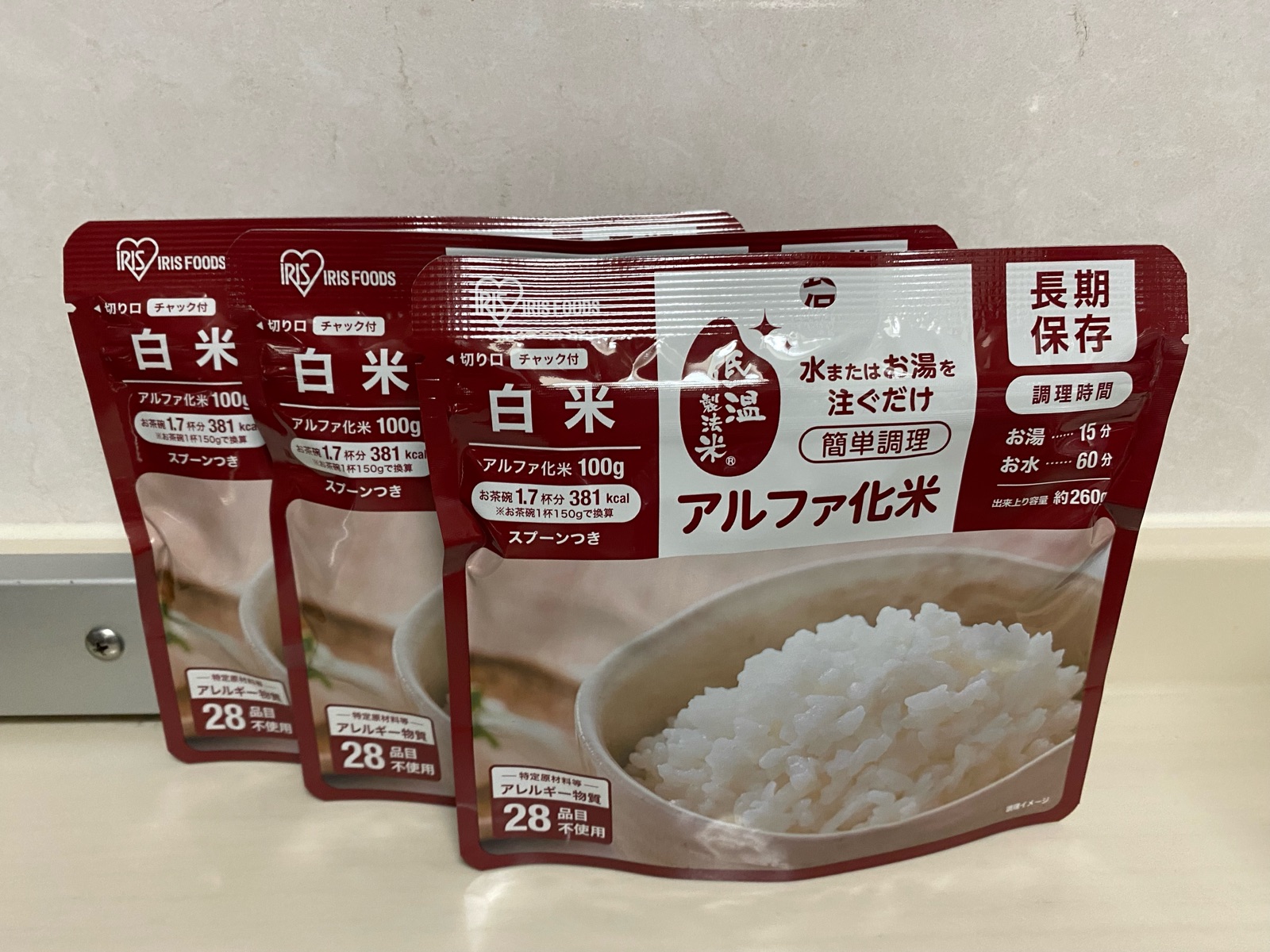 アイリスオーヤマのアルファ化米、今度お昼ご飯にでも食べてみるとします。^m^
