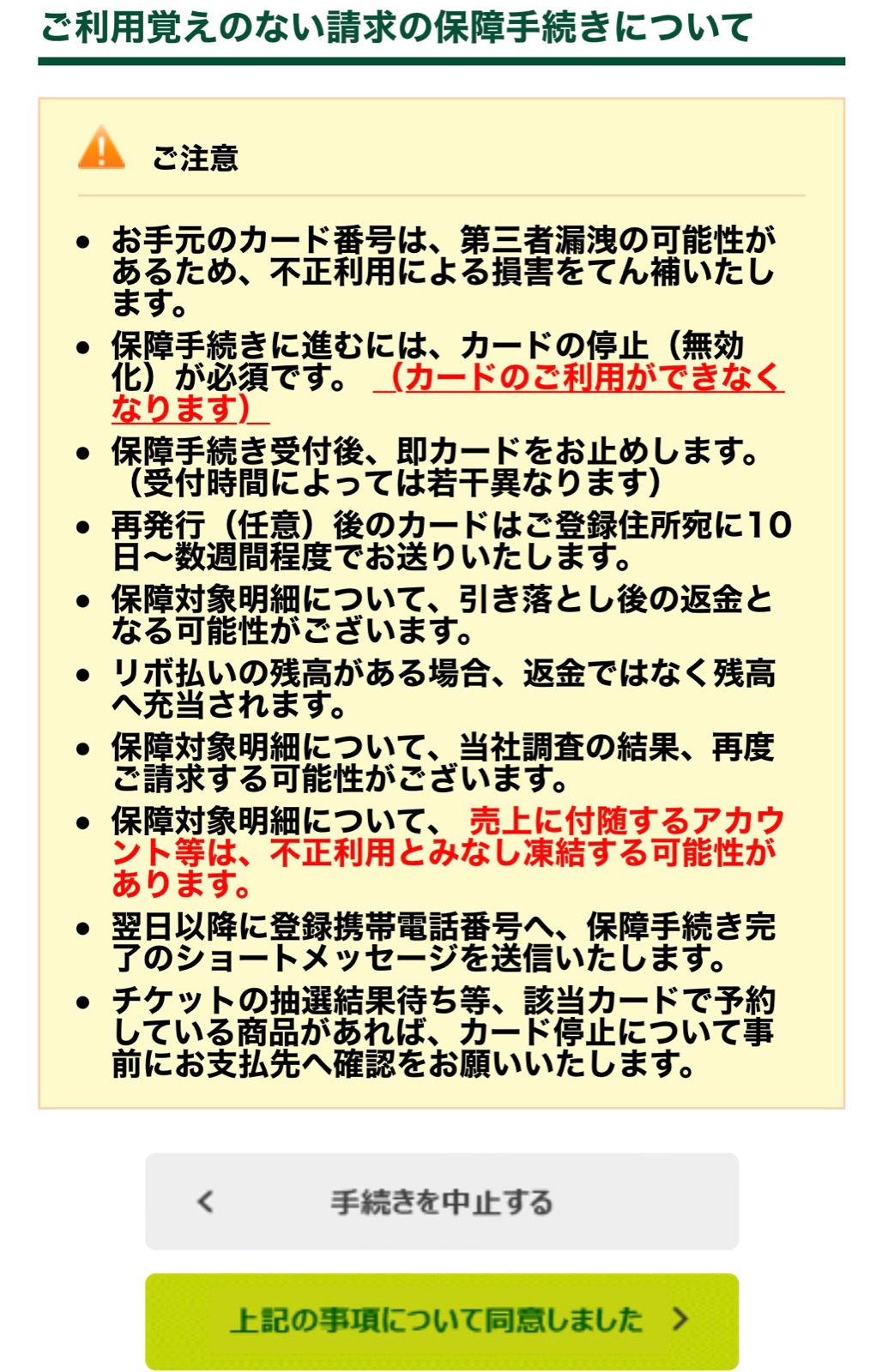リンク先を開くと【ご利用覚えのない請求の保障手続きについて】の説明があり