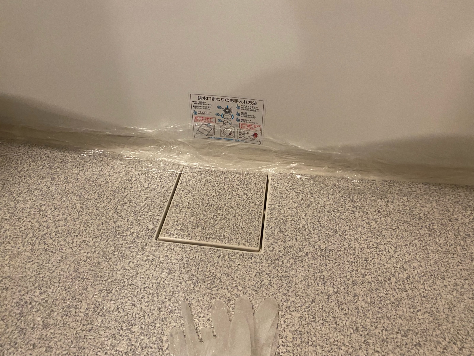 ゴム手袋をはめてラップとキッチンペーパーをめくると