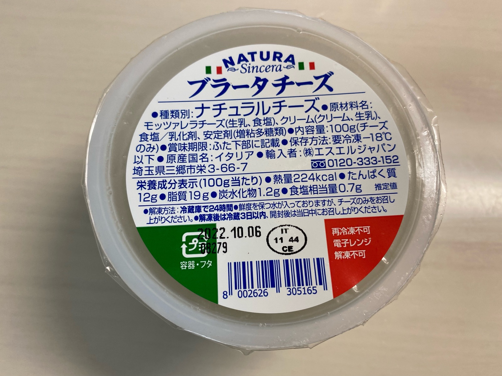 「ブラータチーズ」これも冷凍なので、日持ちします。