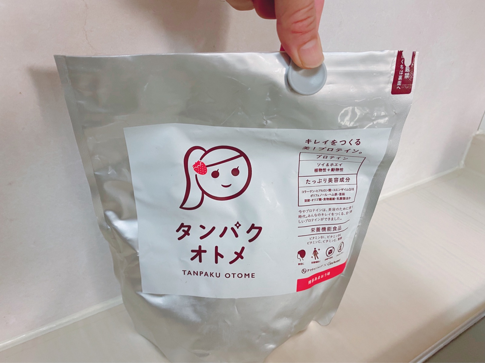 まめ嫁が飲んでいるプロテイン。期間限定のイチゴ味♪