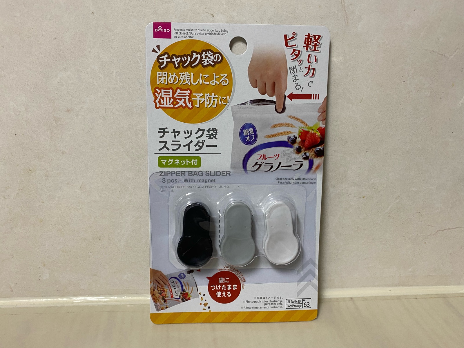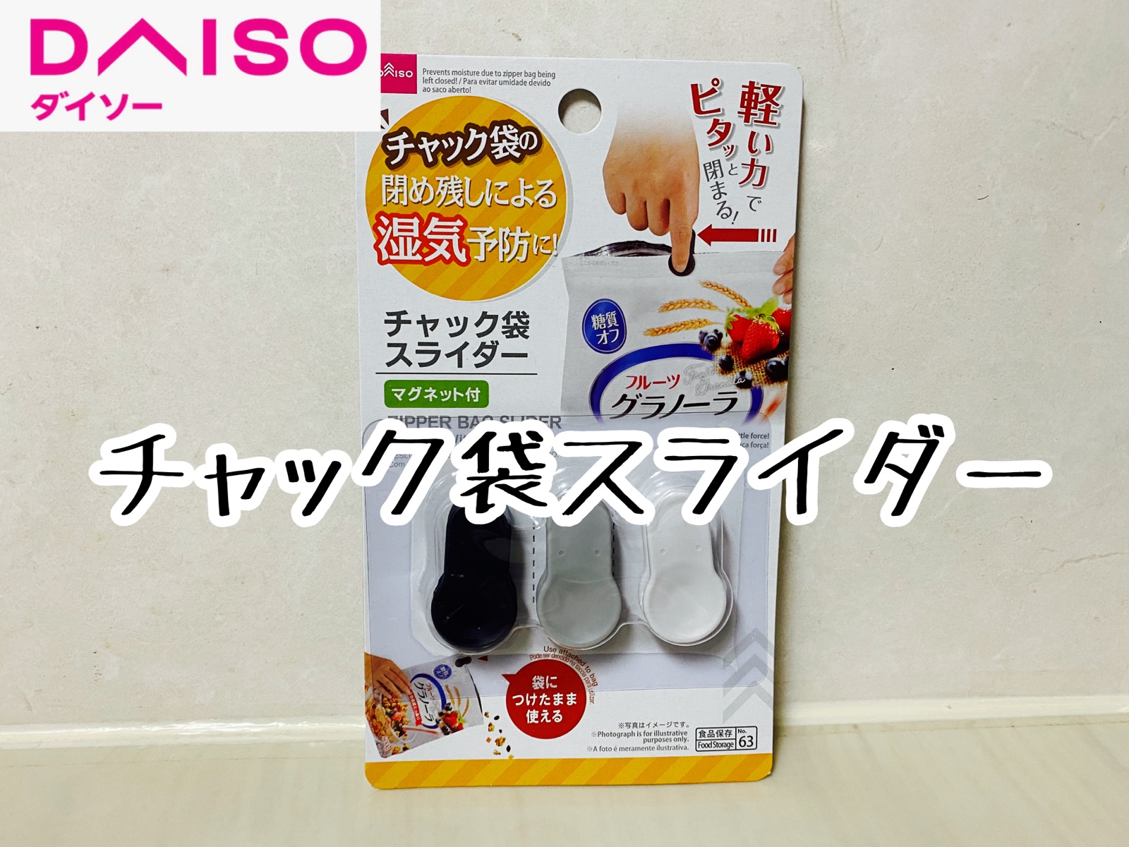 ちゃんと閉めているつもりの主人にも、チャック袋を指先で閉めづらくなっている更年期のまめ嫁にも優しい商品がダイソーで売られていました。