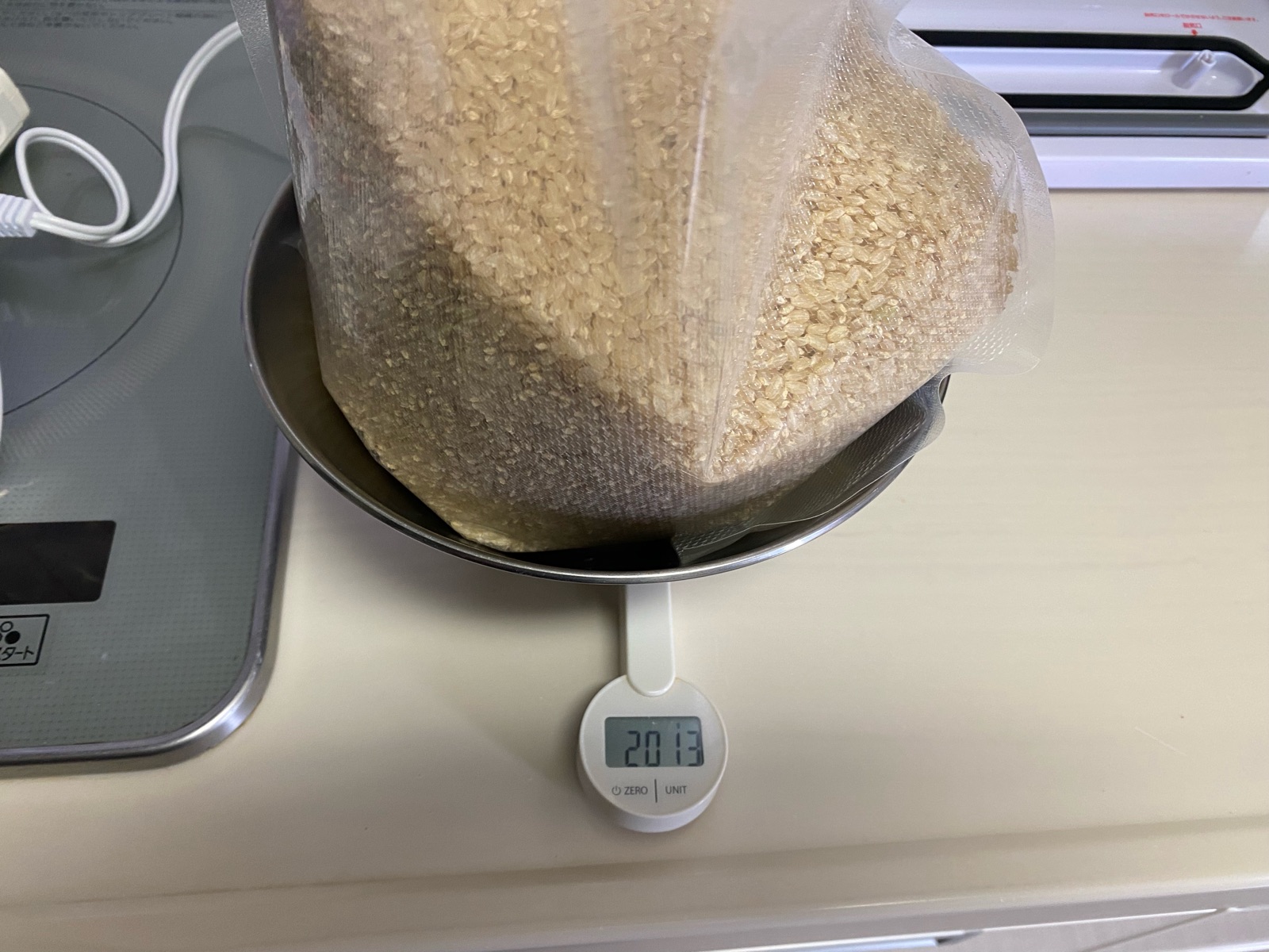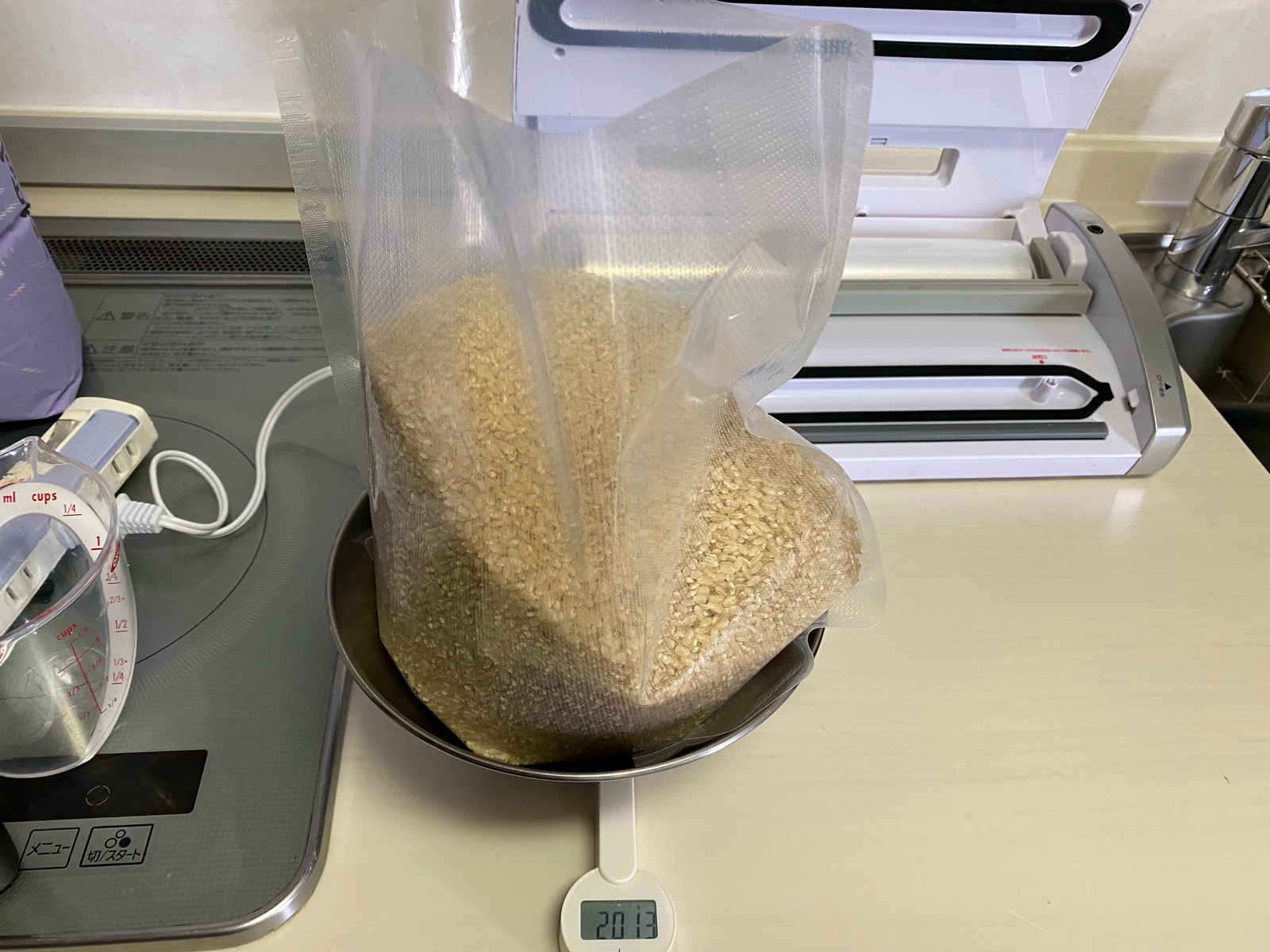 10kgなので、これを4回繰り返せば約2kgの真空パックに小分けが完成!!