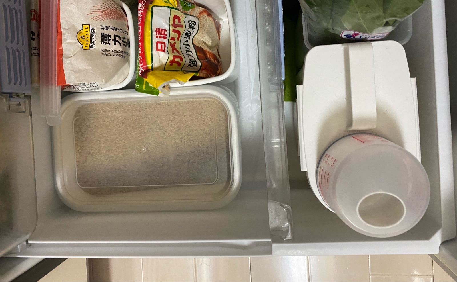 冷蔵庫の野菜室に白米と玄米を保管しています。