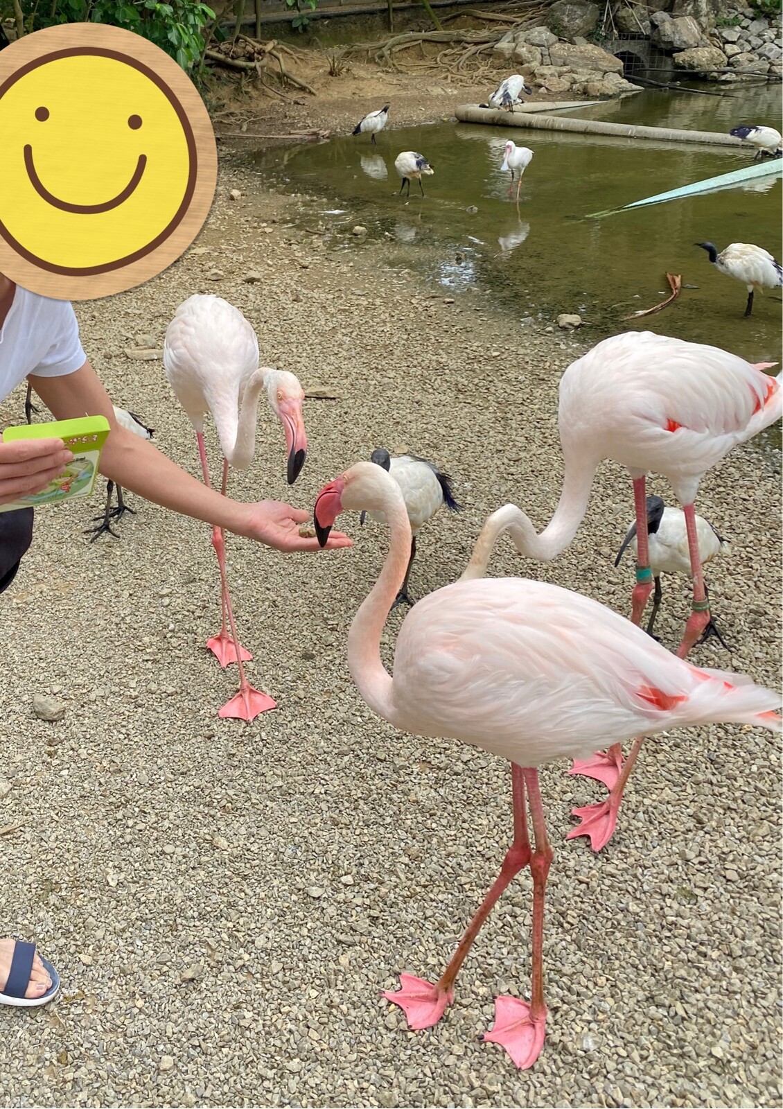 フラミンゴがいたので、早速おやつを・・