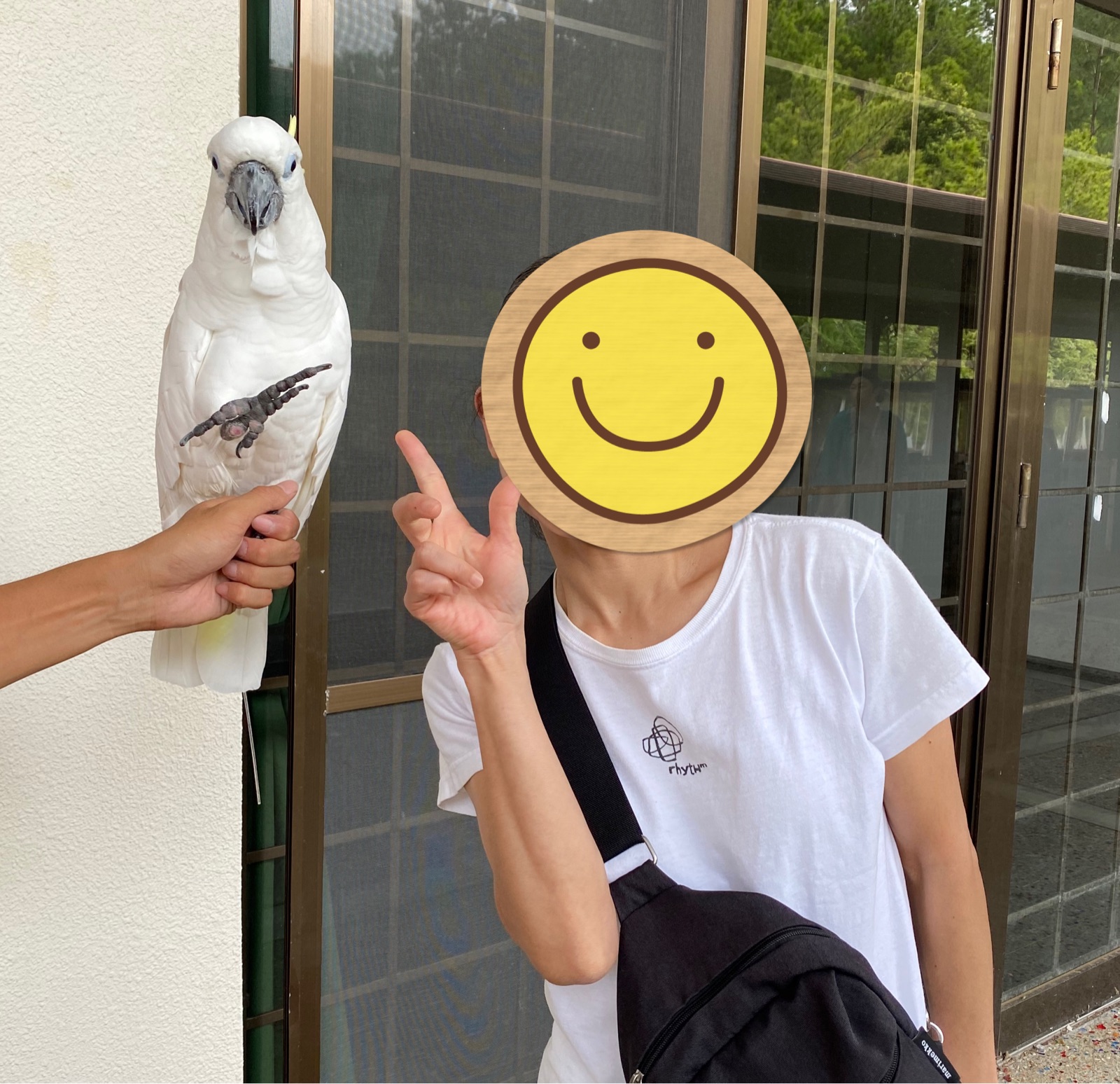 バードショーの後に、ショーに出ていた鳥さんと記念撮影。