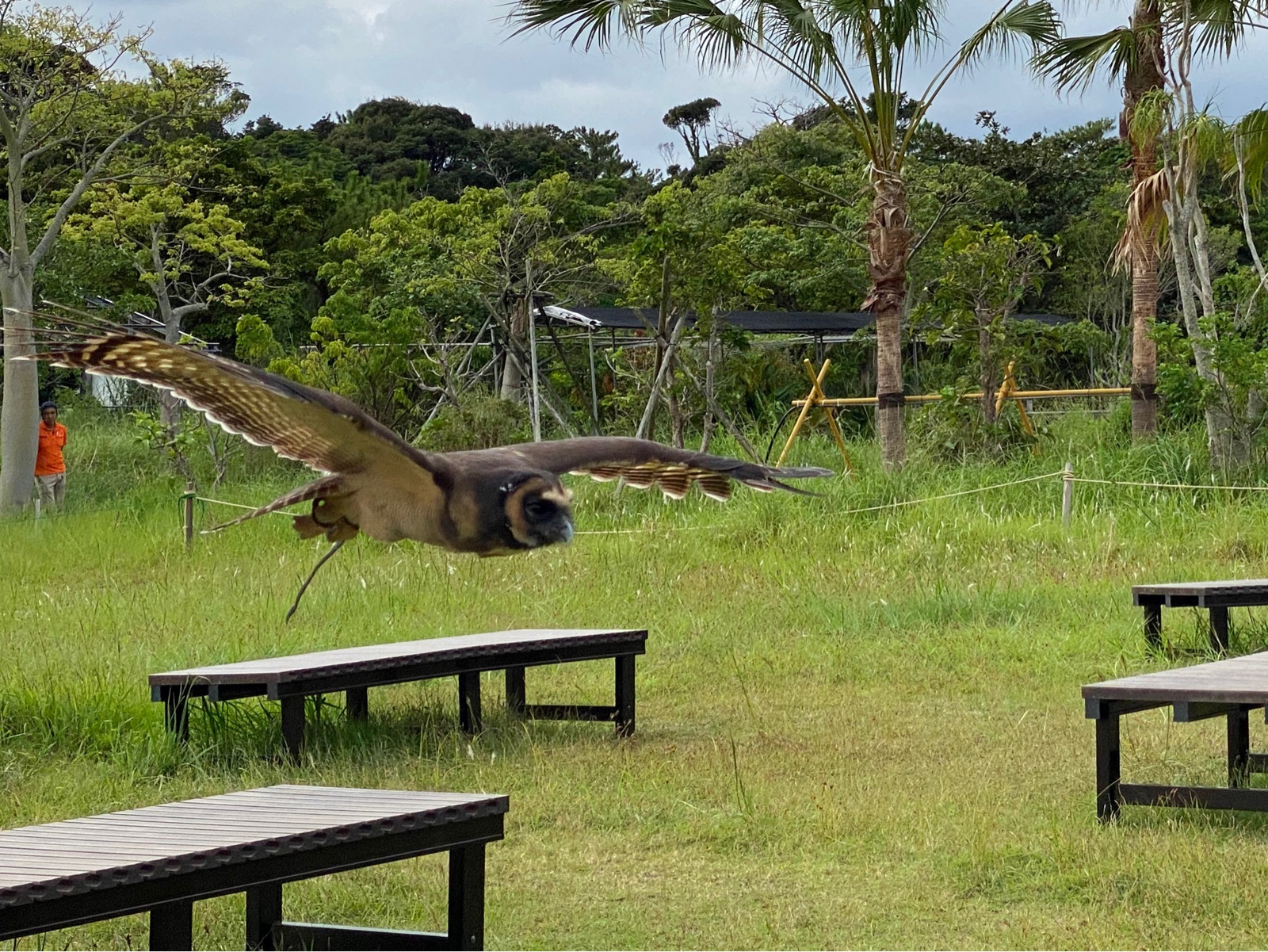 座っているすぐそばをショーをする鳥さんが飛びかいます。