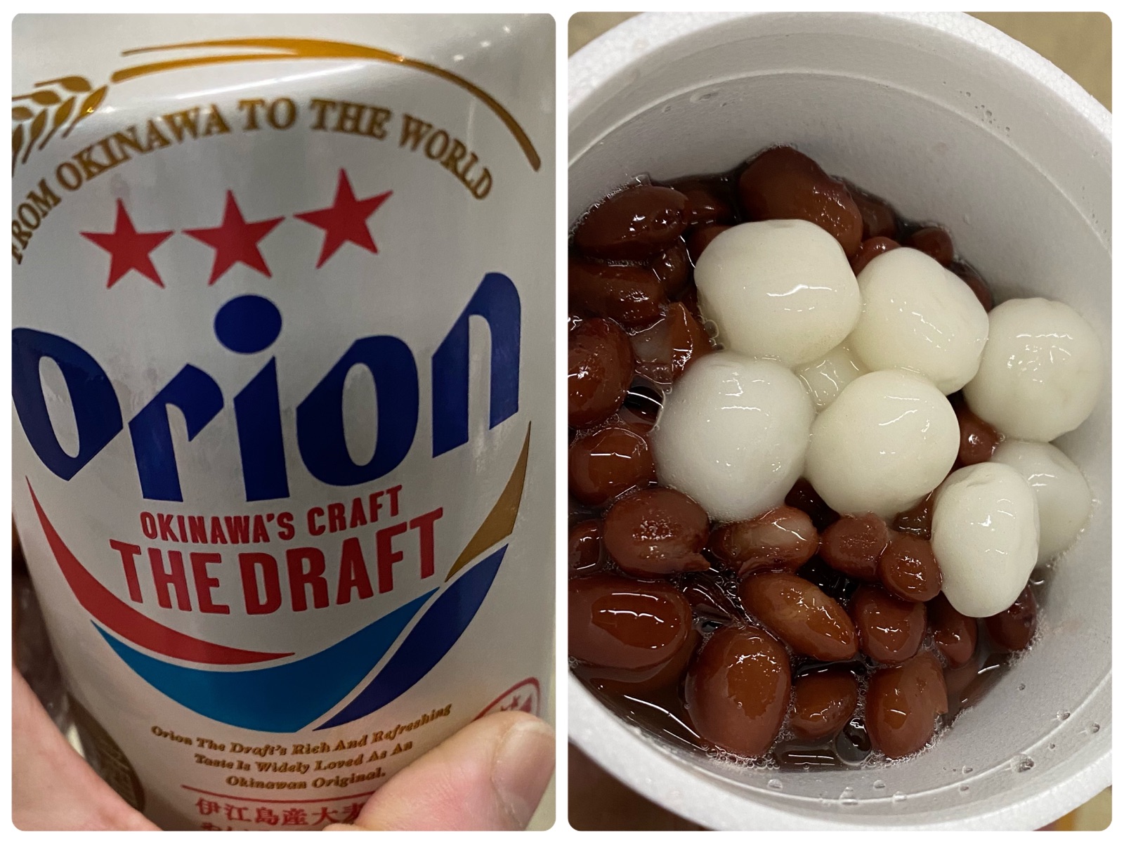 私ビール。主人沖縄ぜんざいを食べて沖縄旅行を最後まで楽しみました。