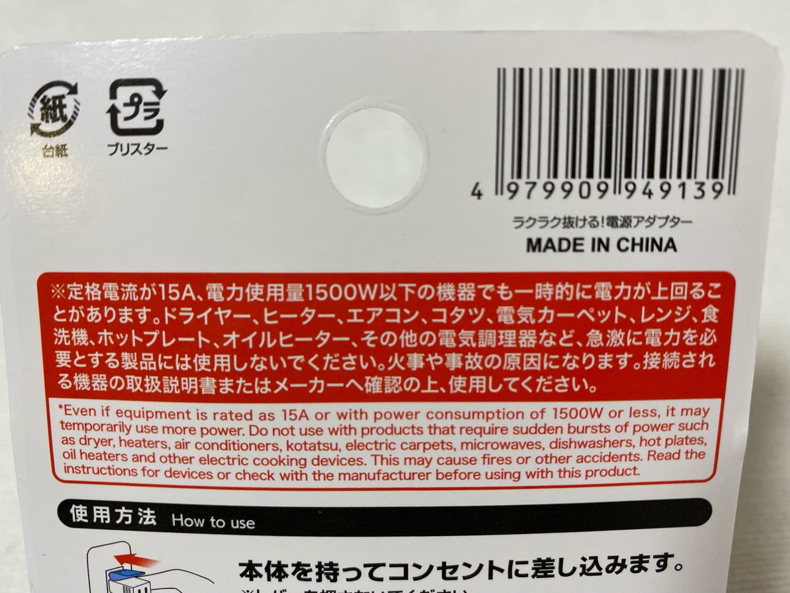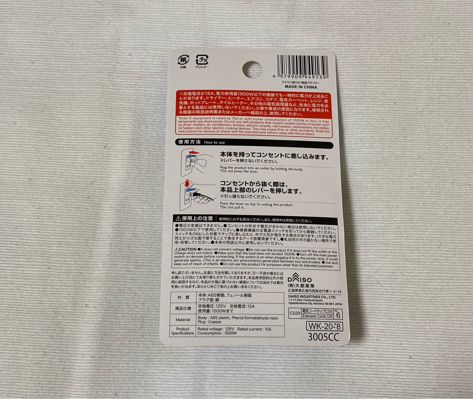 ダイソー 「ラクラク抜ける」電源アダプター 税込み110円