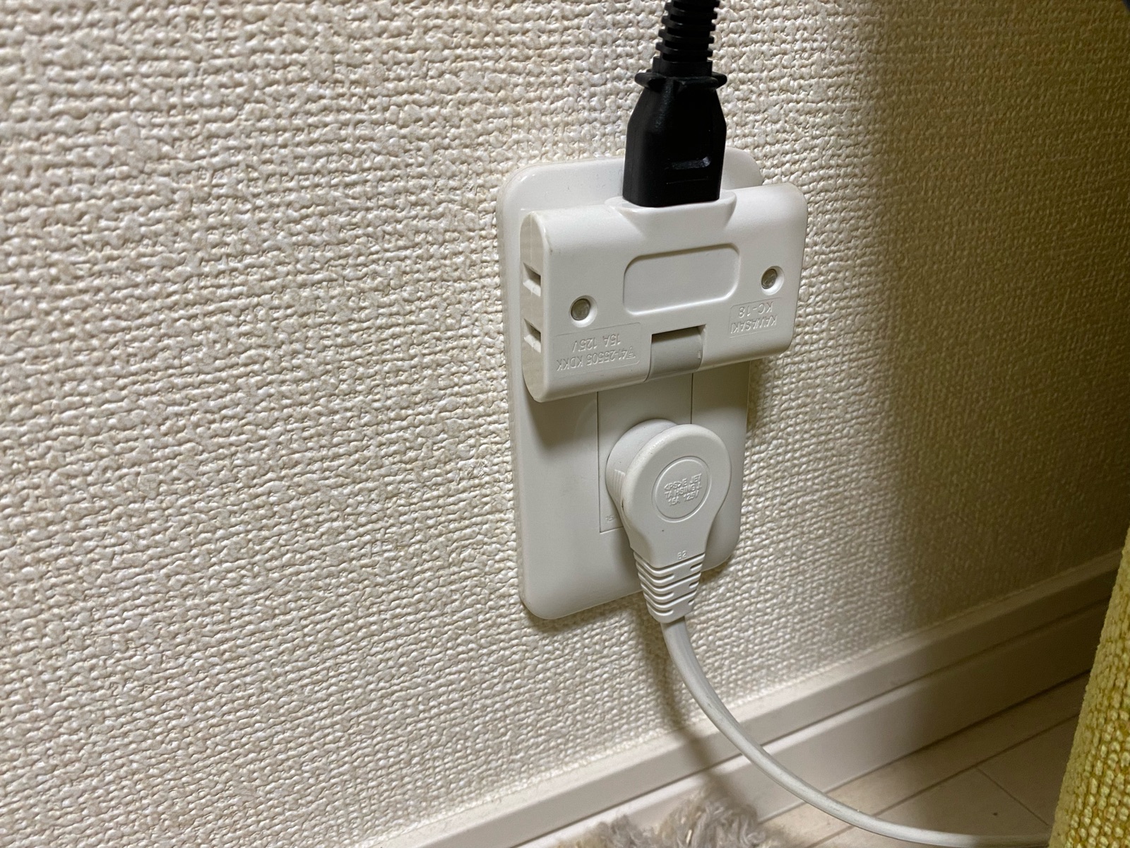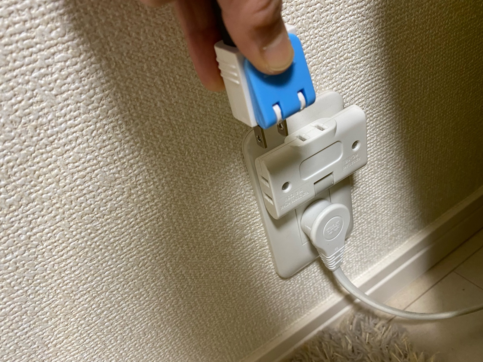 片手で2口・3口コンセントを押さえながら、電源アダプターを抜くのですが