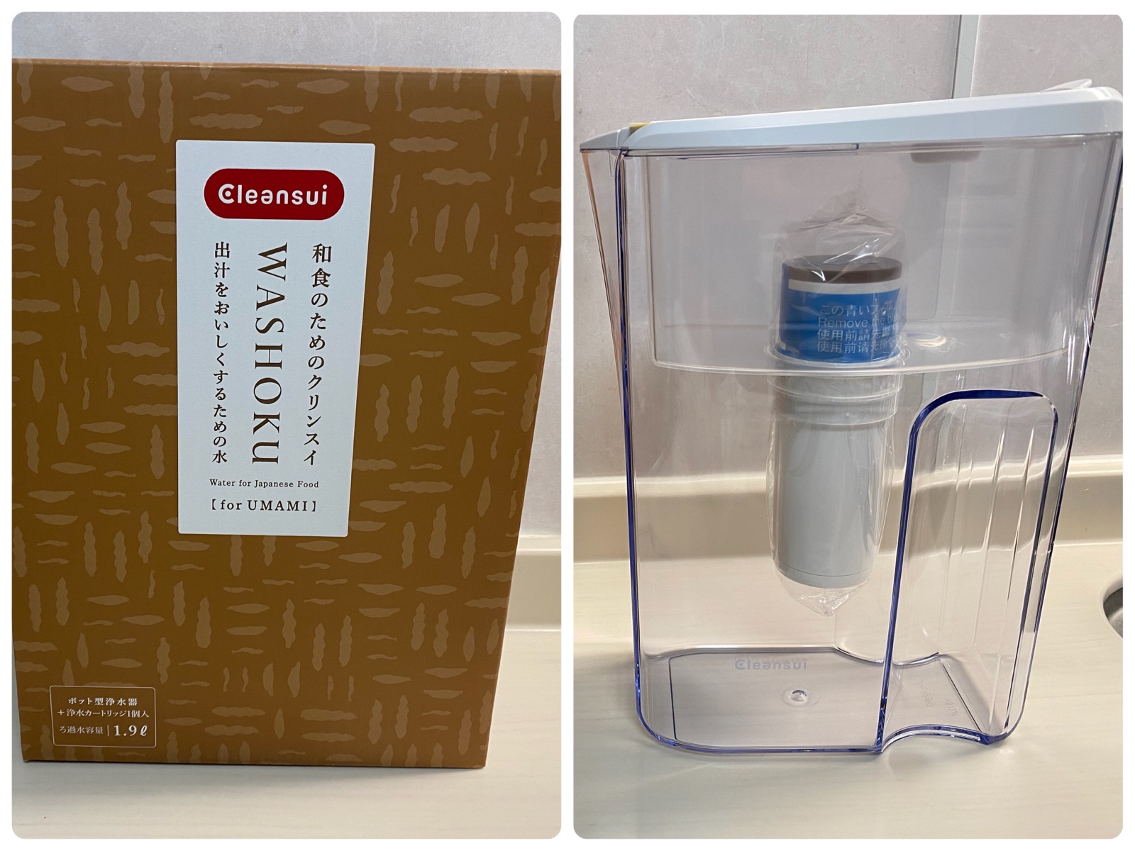 お土産に「お出汁をおいしくするための水」浄水器セットを頂きました。