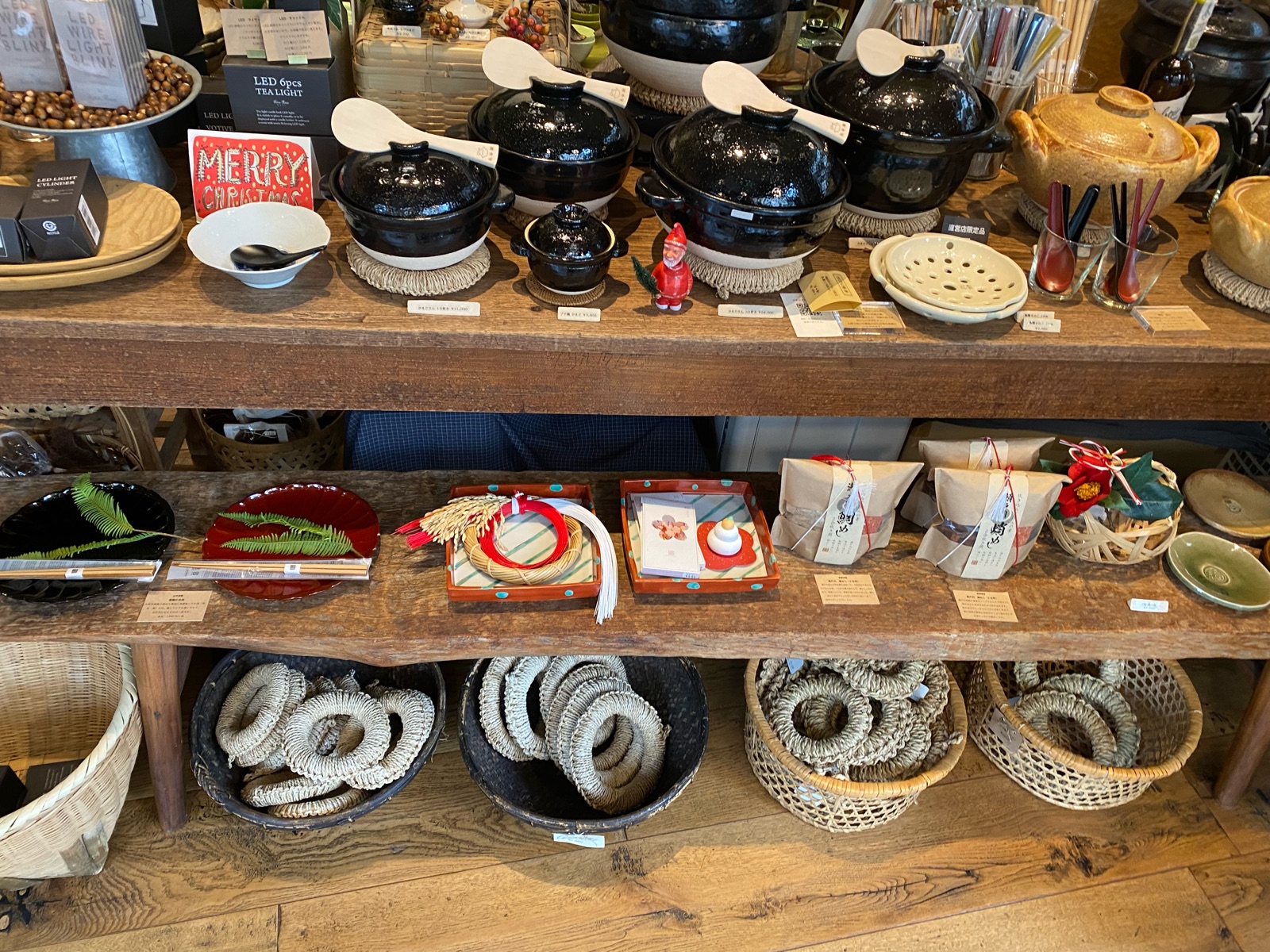 雑貨屋さんと間違えそうなくらいに素敵雑貨と一緒に土鍋が沢山並んでいます。