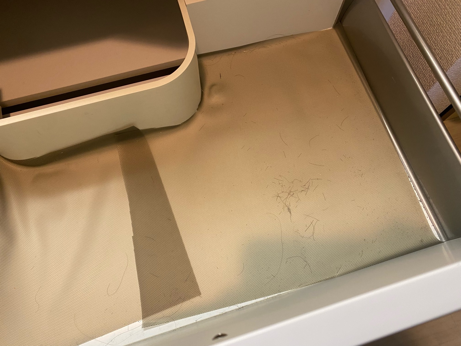 落ちている髪の毛の量が酷すぎる。引き出しはちゃんと閉めてからカットするように言わなくちゃ!