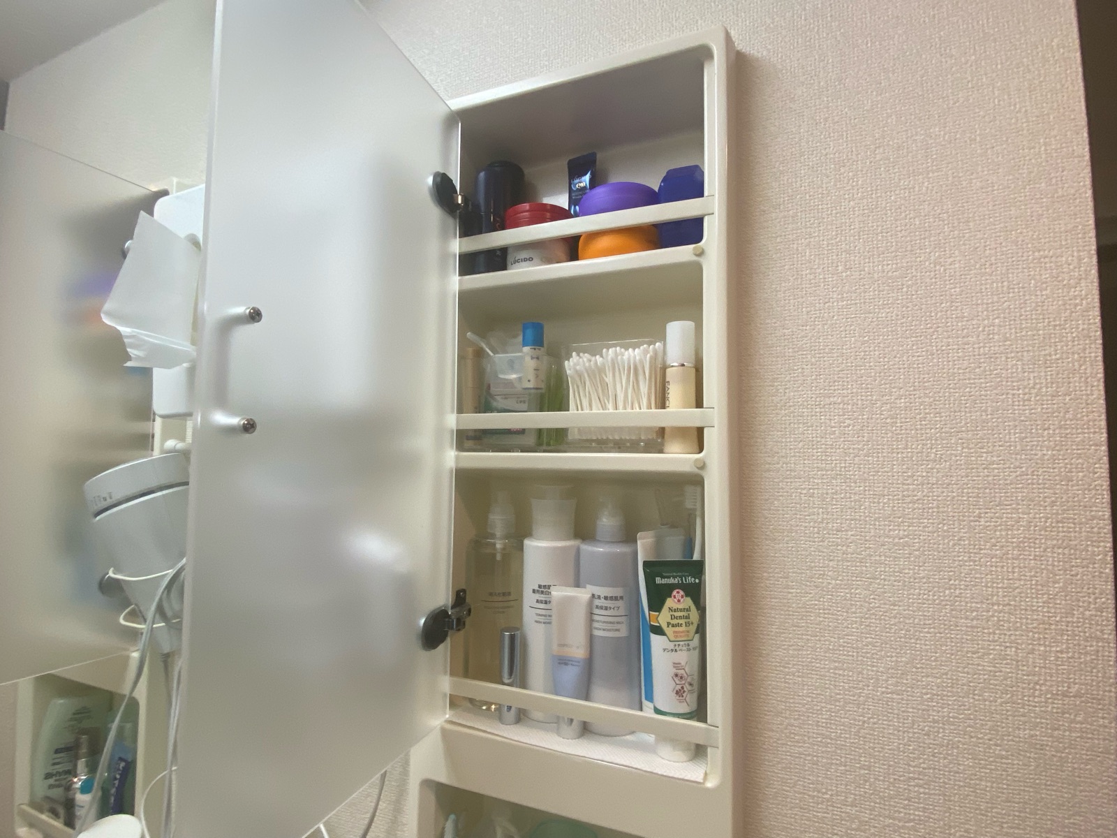 うがい薬の点・点が目に入ったので、ついでに壁にある収納棚の掃除もする事に