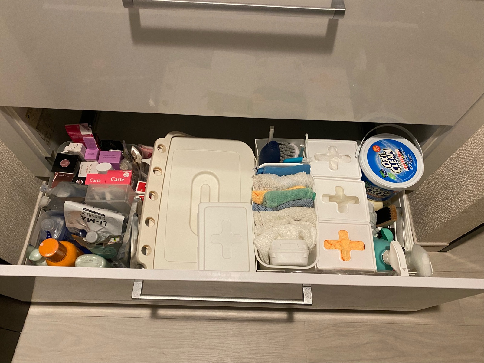 今日の【1日1ヶ所】は「昨日の続きで洗面所引き出し掃除」