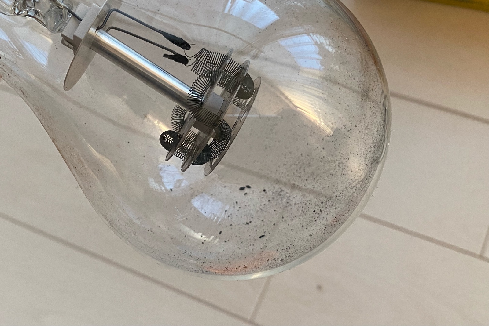 取り出してみると、電球の中には黒い粉がいっぱい。