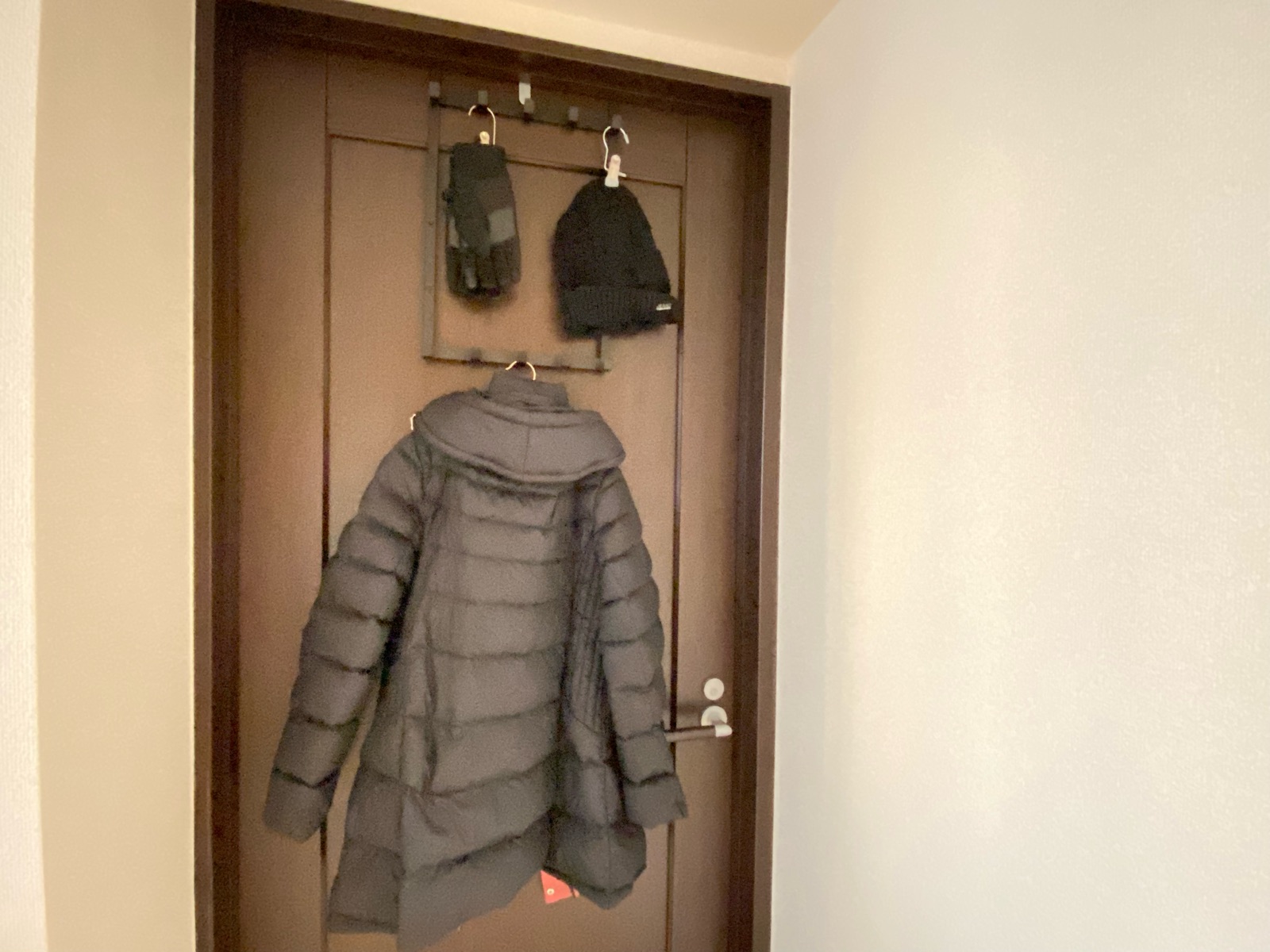 これらの冬小物にプラス、アウターやカバンがあり、ドアハンガーを使っていても