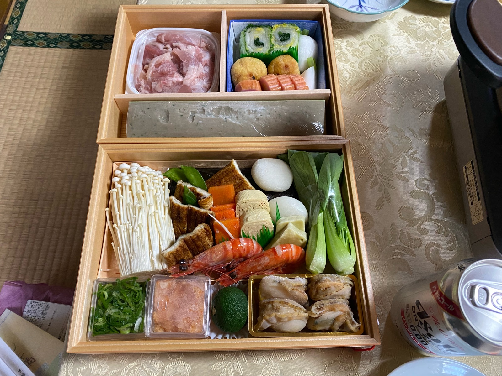 その後は主人の実家で「今井」のうどんすき。と豪華なお節を頂き