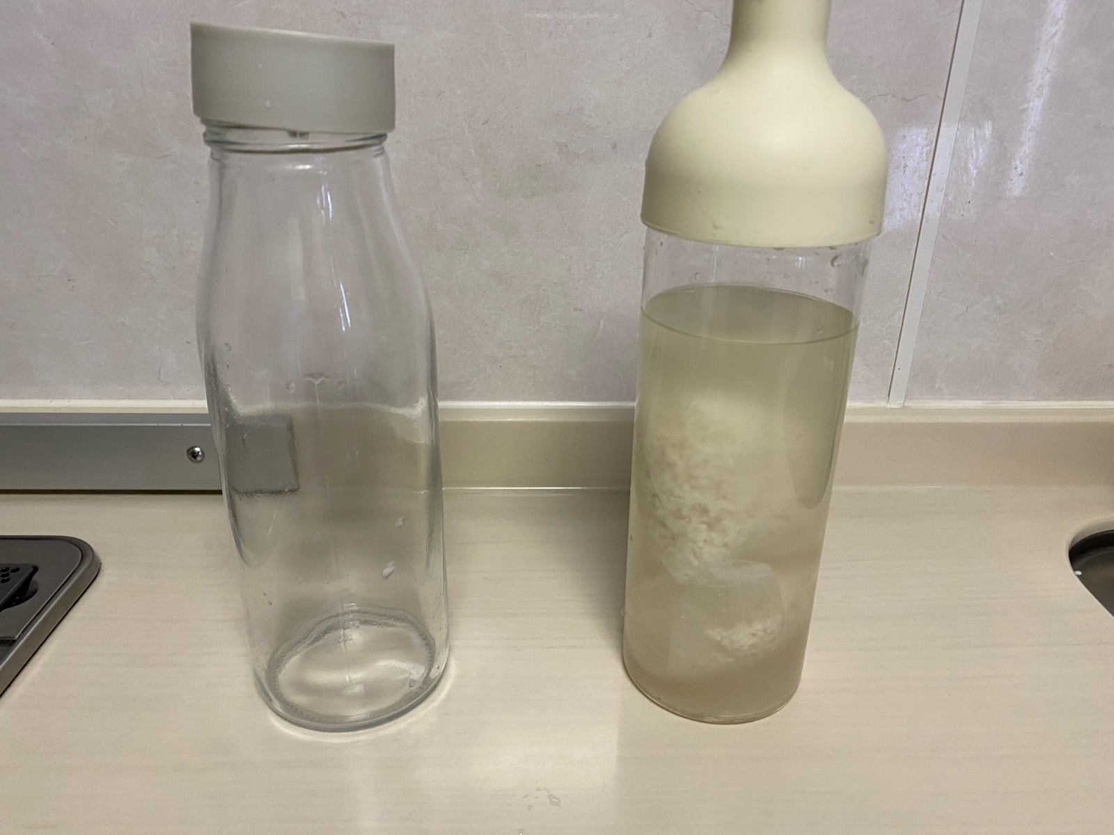 最初に友人の「こうじ水」飲んだ時よりもめちゃくちゃ薄い。もう少し冷蔵庫で寝かして