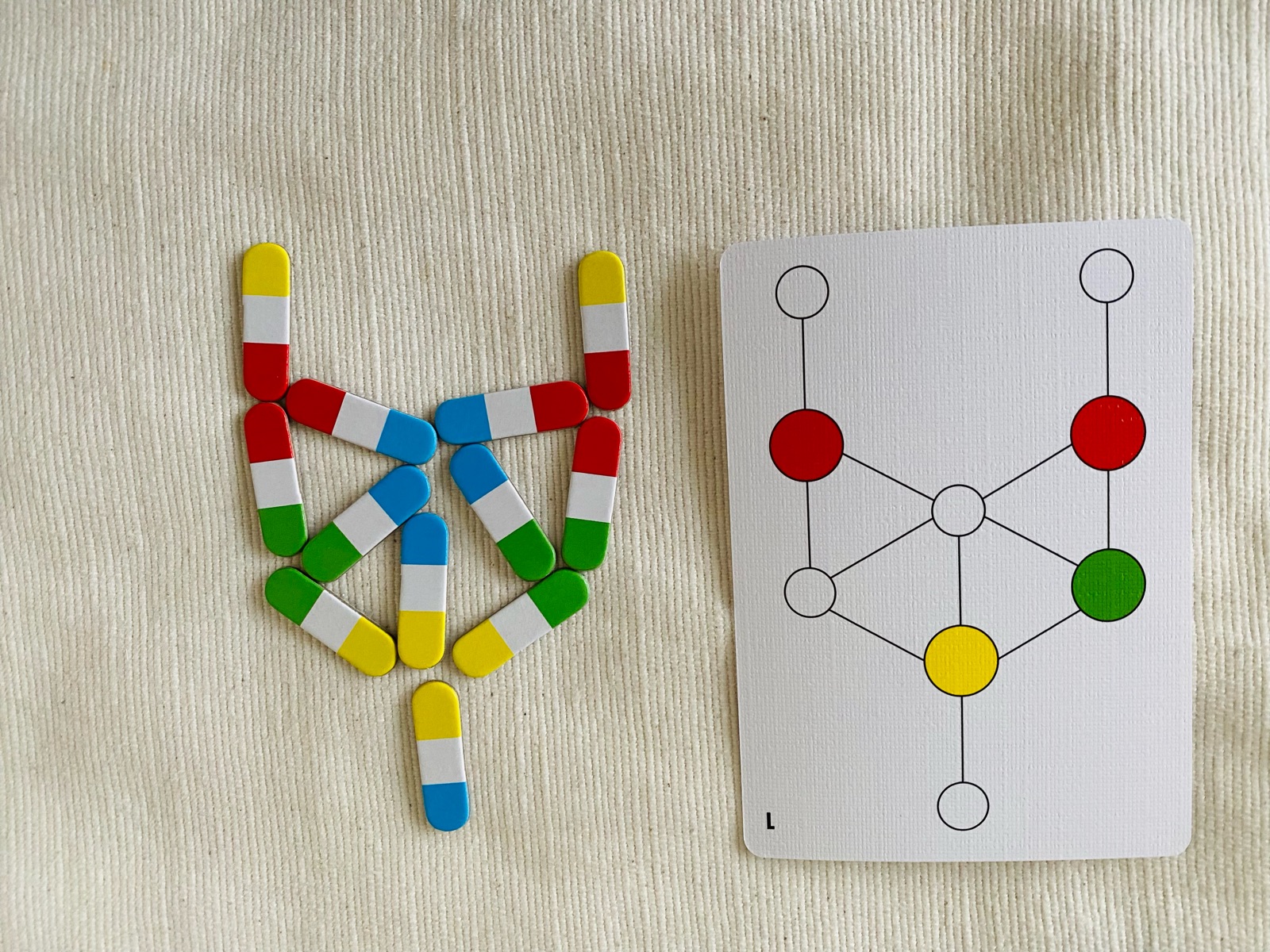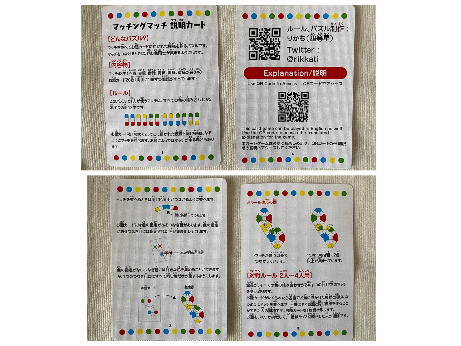 カラフルな小さな錠剤とゲームの遊び方・出題カードが入っていて