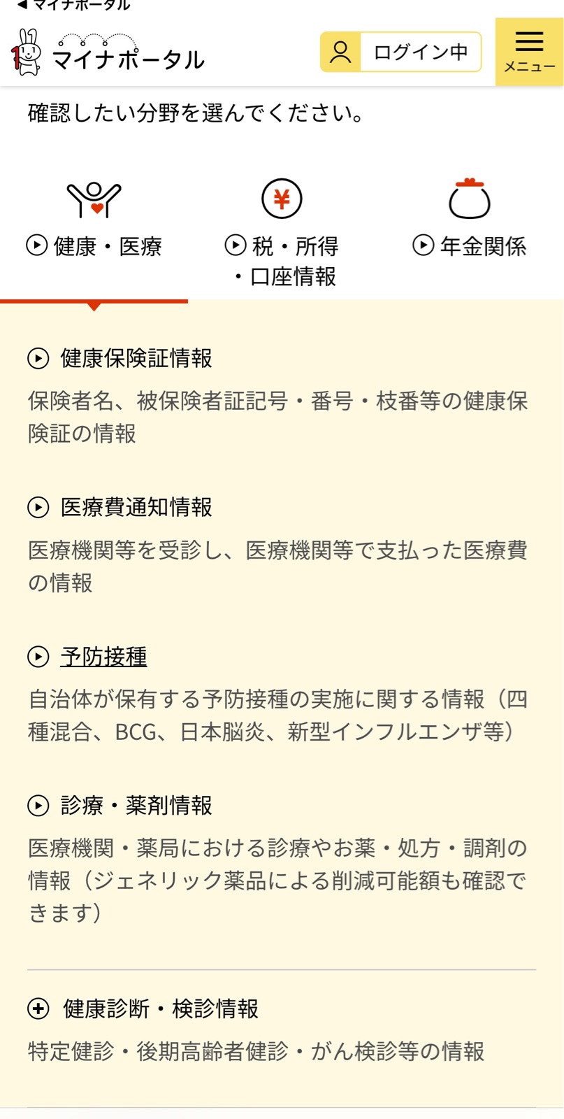 いつの間にか、マイナポータルのアプリでできる事が増えていました。