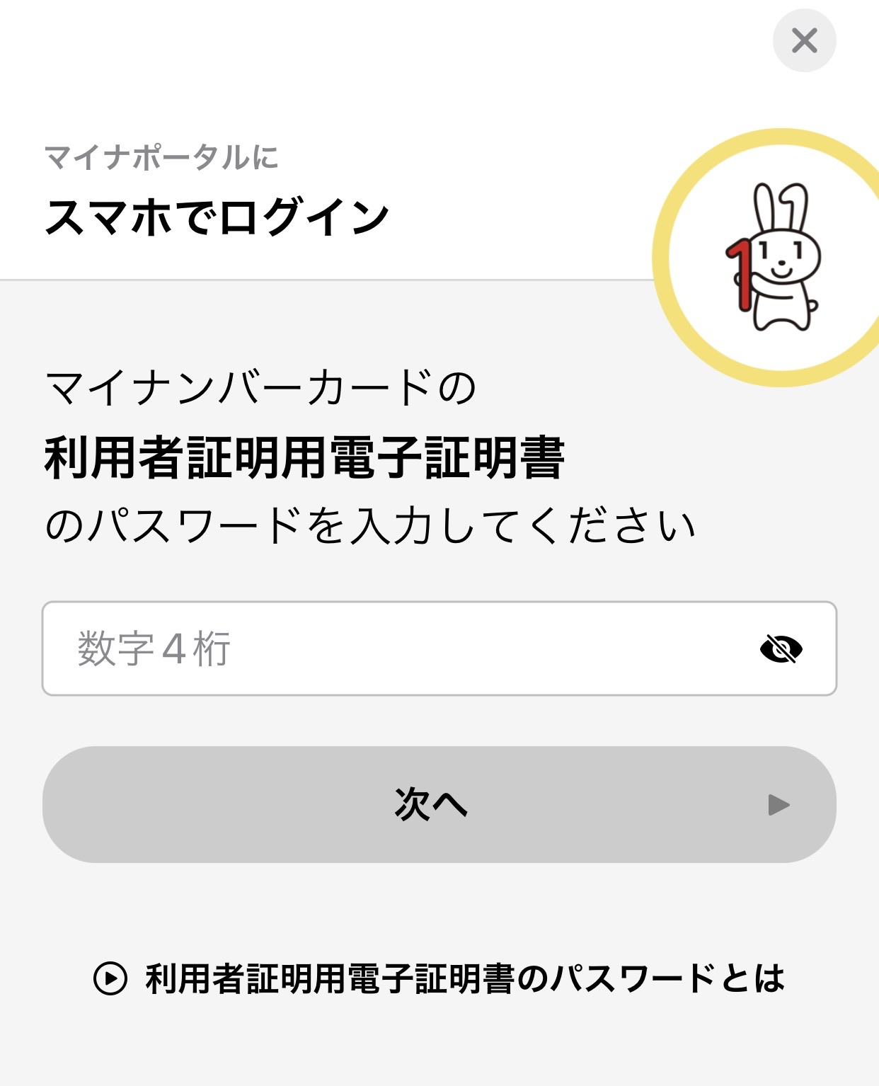 必要なモノは、マイナンバーカードとマイナポータルのアプリ・利用者証明用の4桁のパスワード