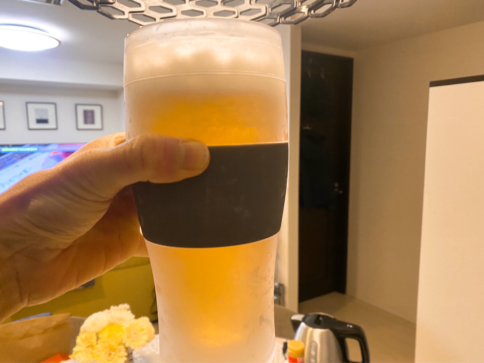 やっぱりビールはキンキンに凍ったジョッキでは??と頭に思い浮かびながらビールを一口。
