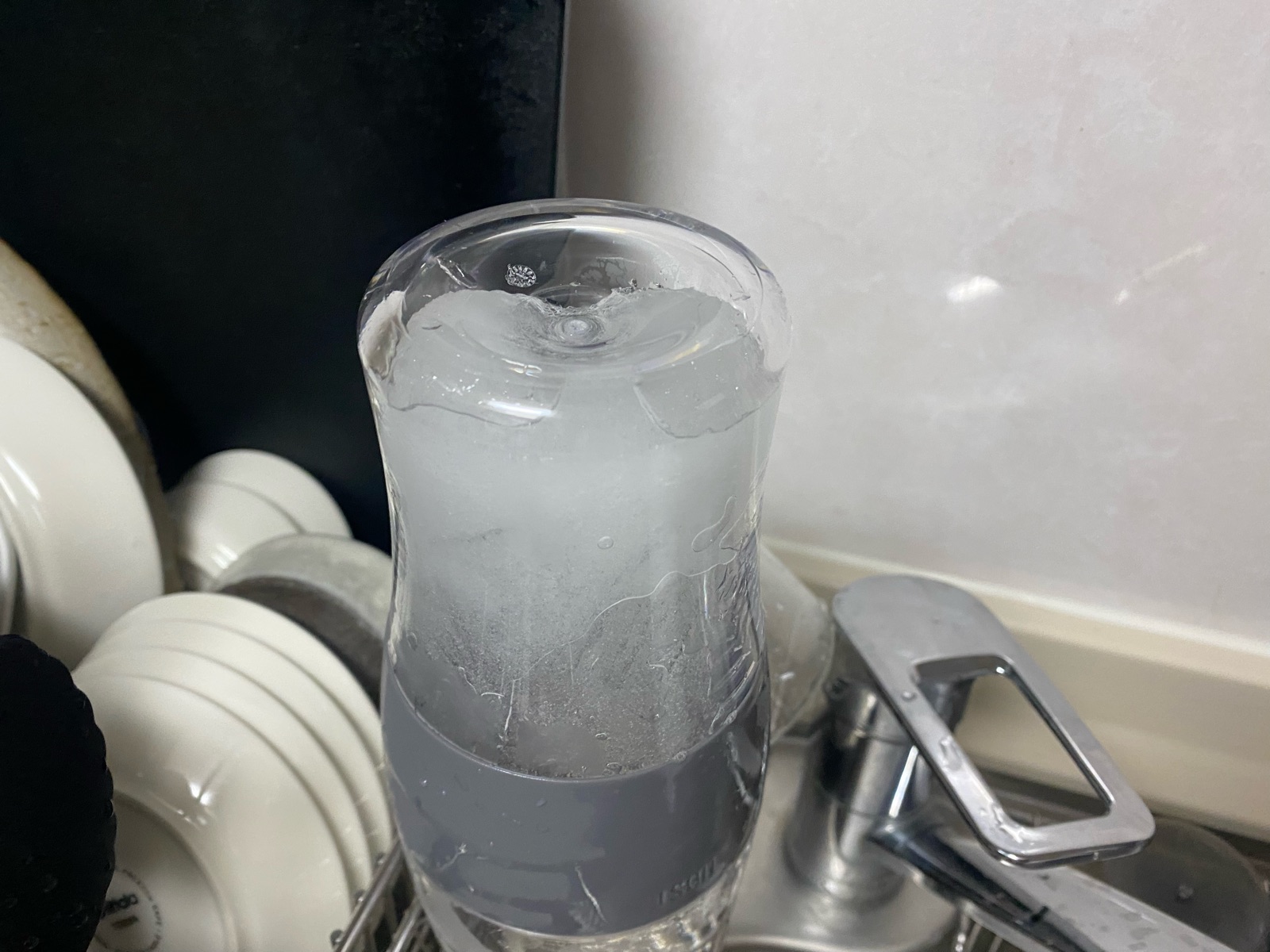 カバーを取り外すと、2重グラスで中にゼリーみたいな独自冷却ジェルが入っています。