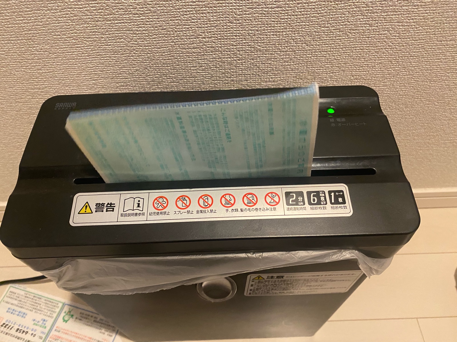 シュレッダー”始めた”と思ったら停止。連続運転時間がもう少し長い物にまた買い替えを考え中。