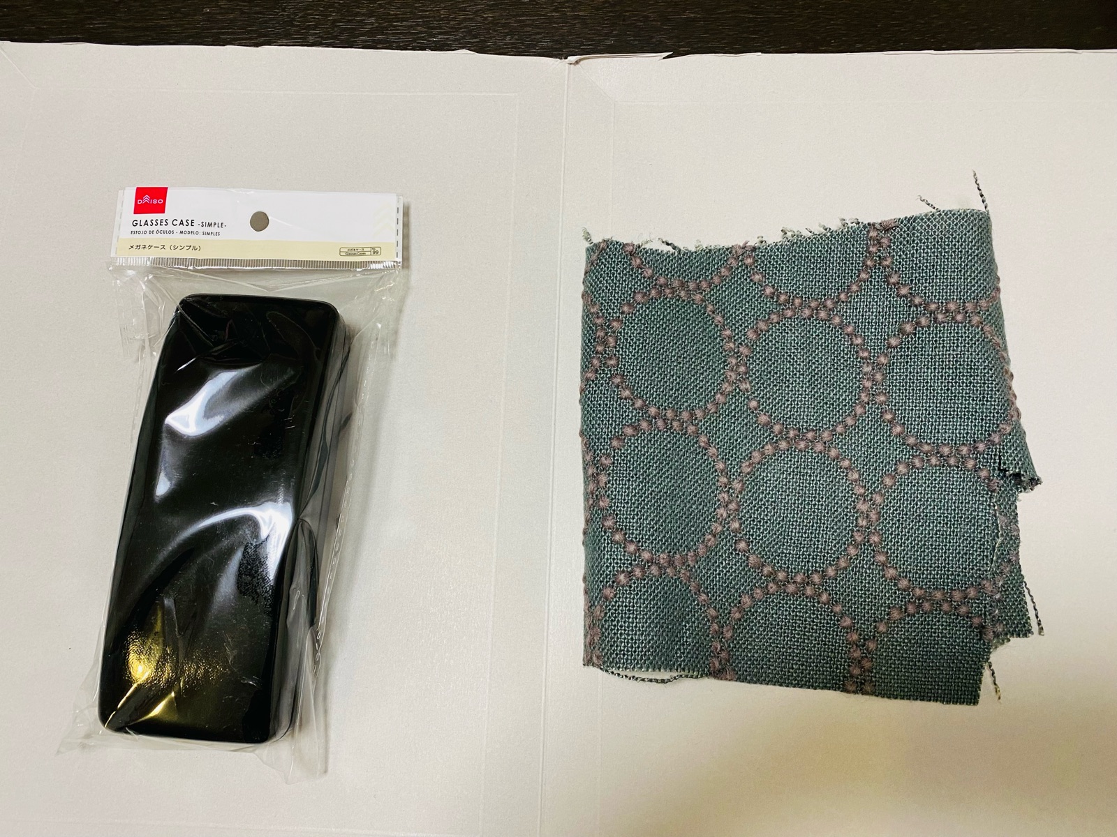 ダイソーでメガネケースを購入し、布が届いたので