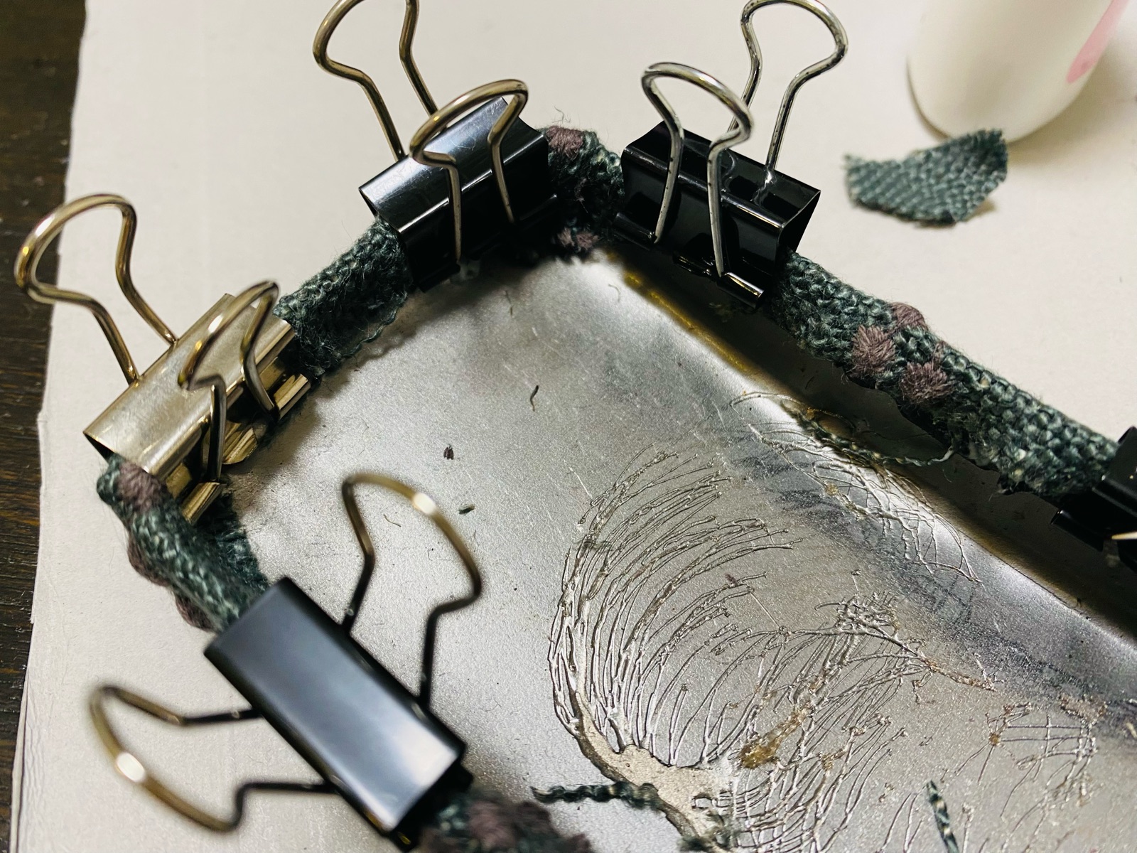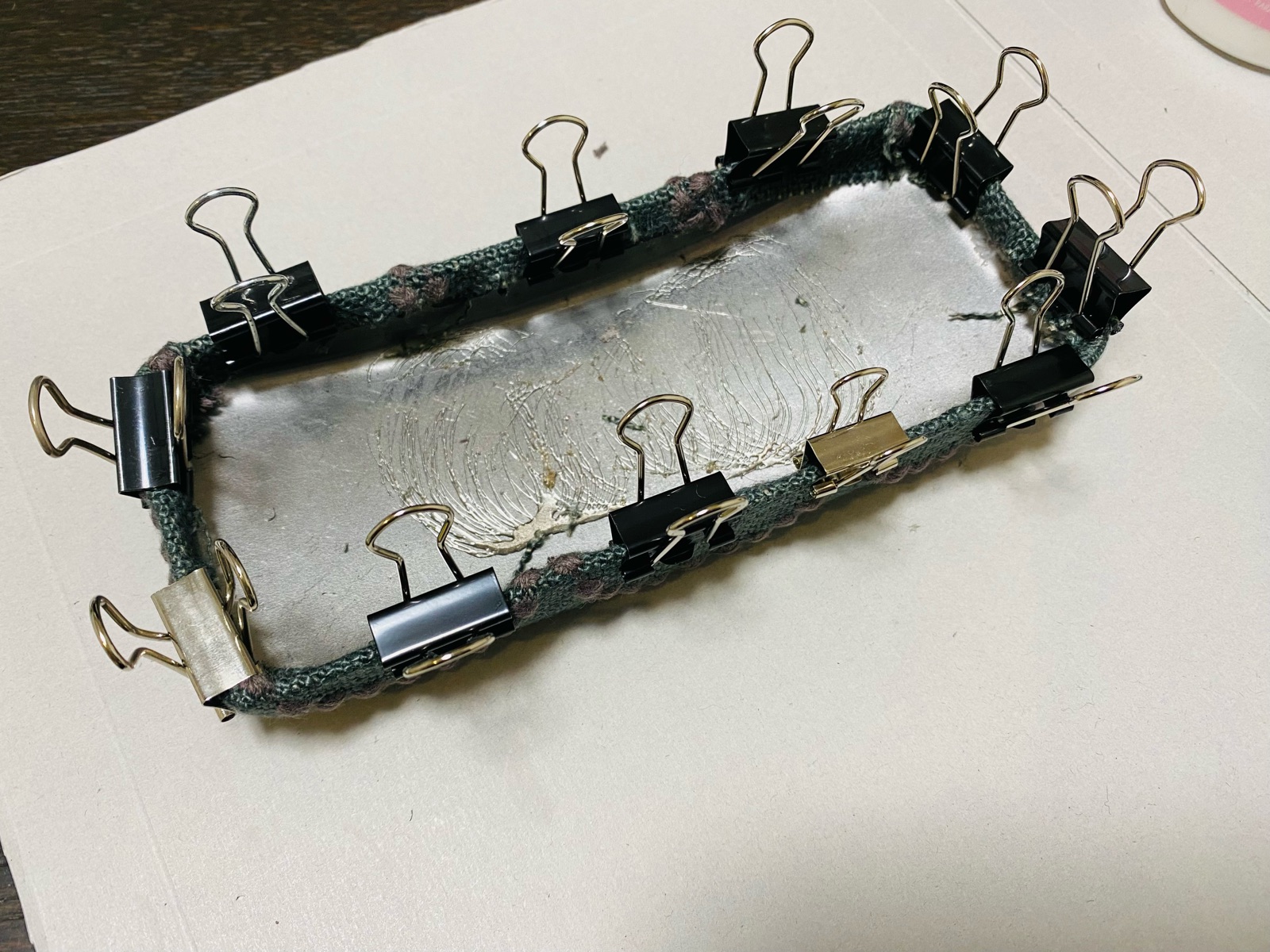 折り返し部分もしっかりと貼り付けできるようにクリップで固定。