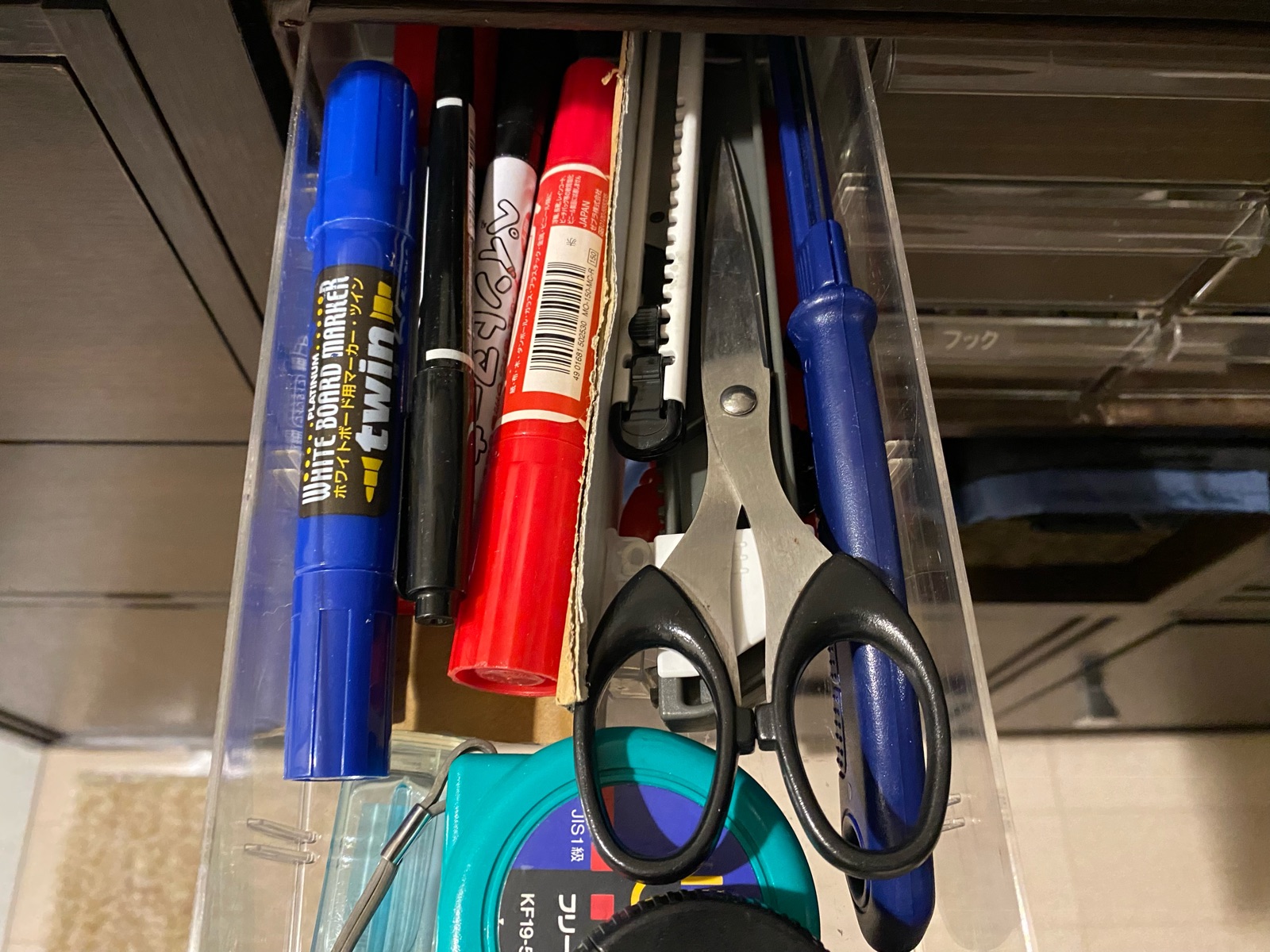 写真に写ってないけど、引き出しに入れている段ボールカッター。