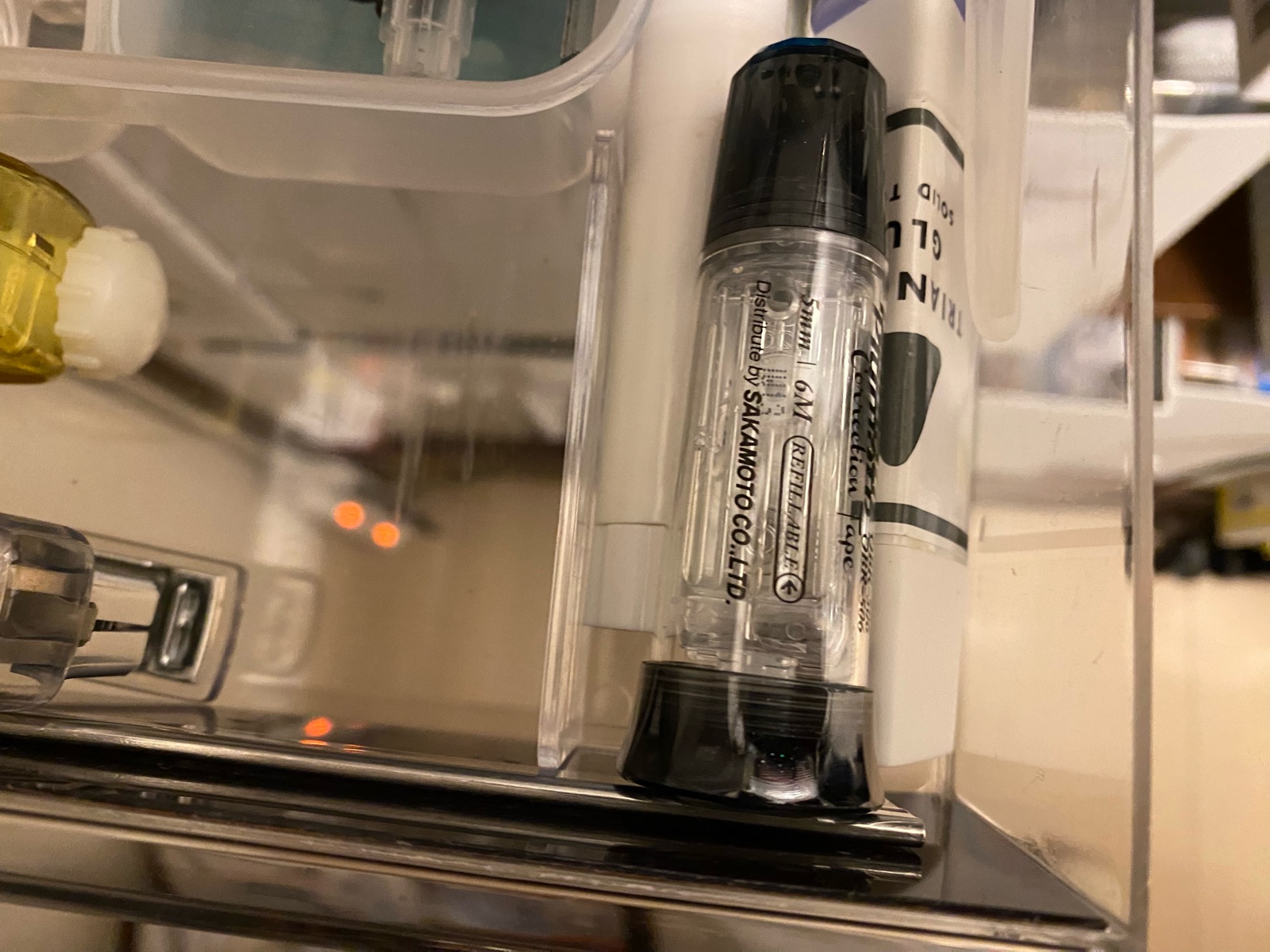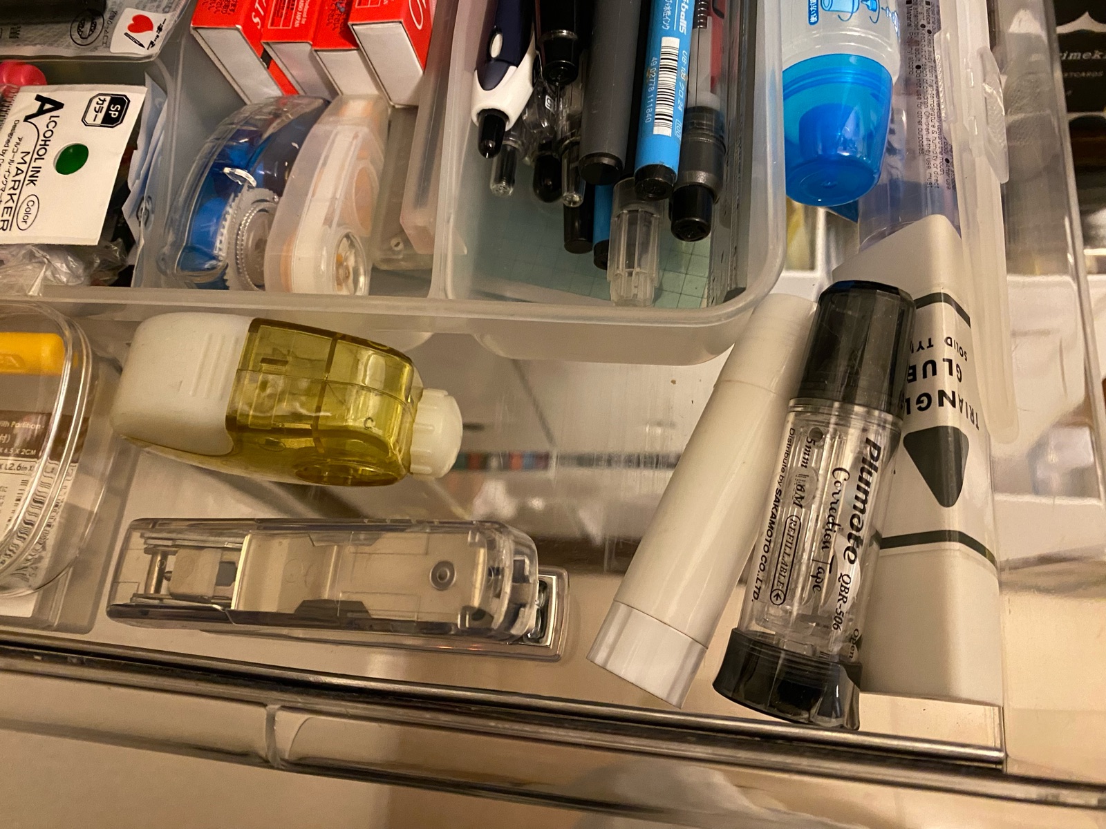 右側の糊が引き出しを開け閉めしていると、↑こんな風に横へ流れてくるので