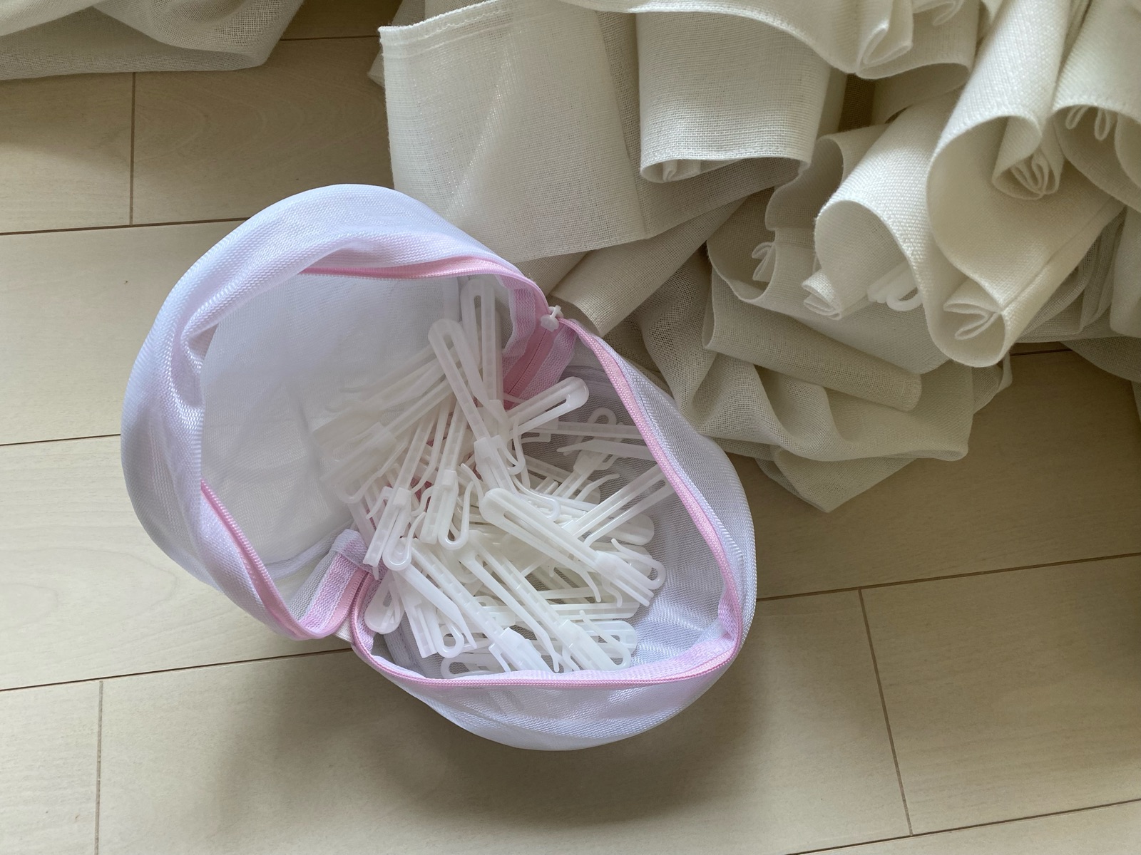 いつもの様にカーテンフックもネットに入れて、一緒に洗濯機へ