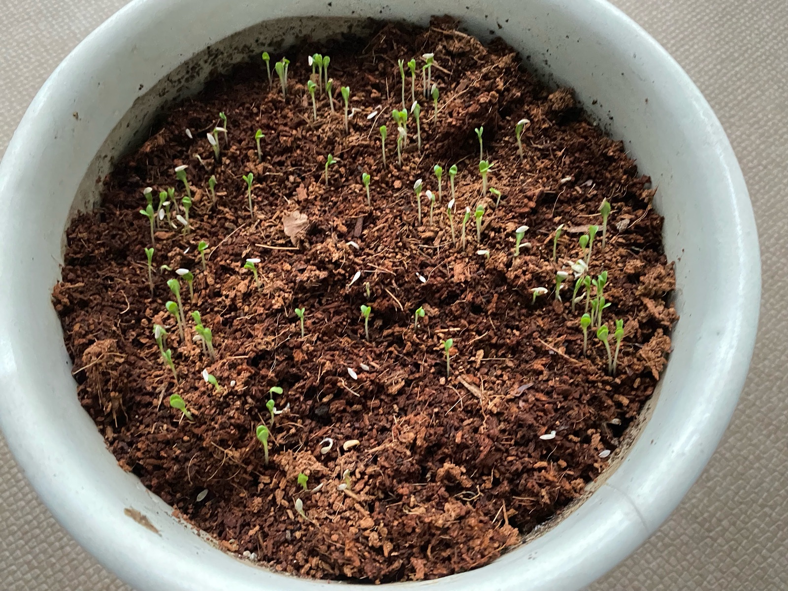 ちょっとボケたけど、殆どのタネが発芽しています。